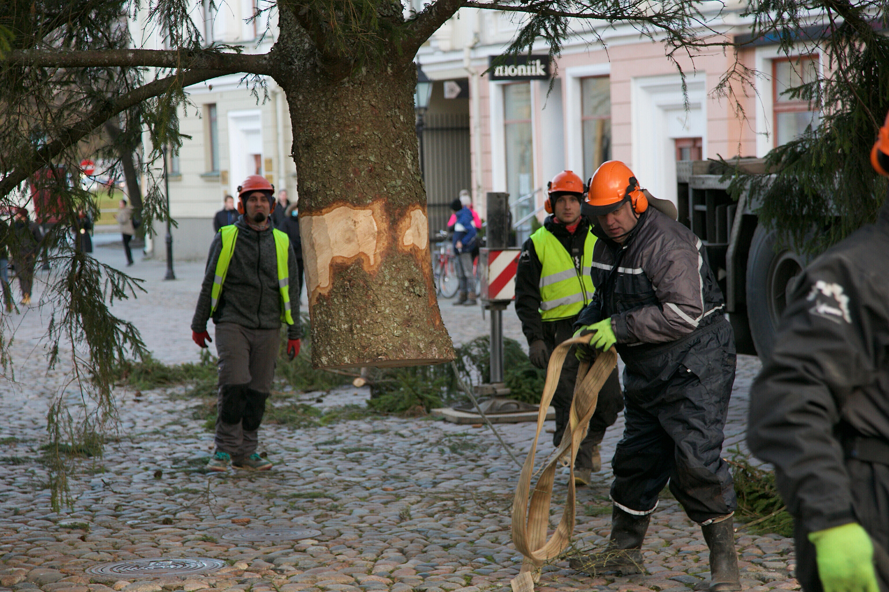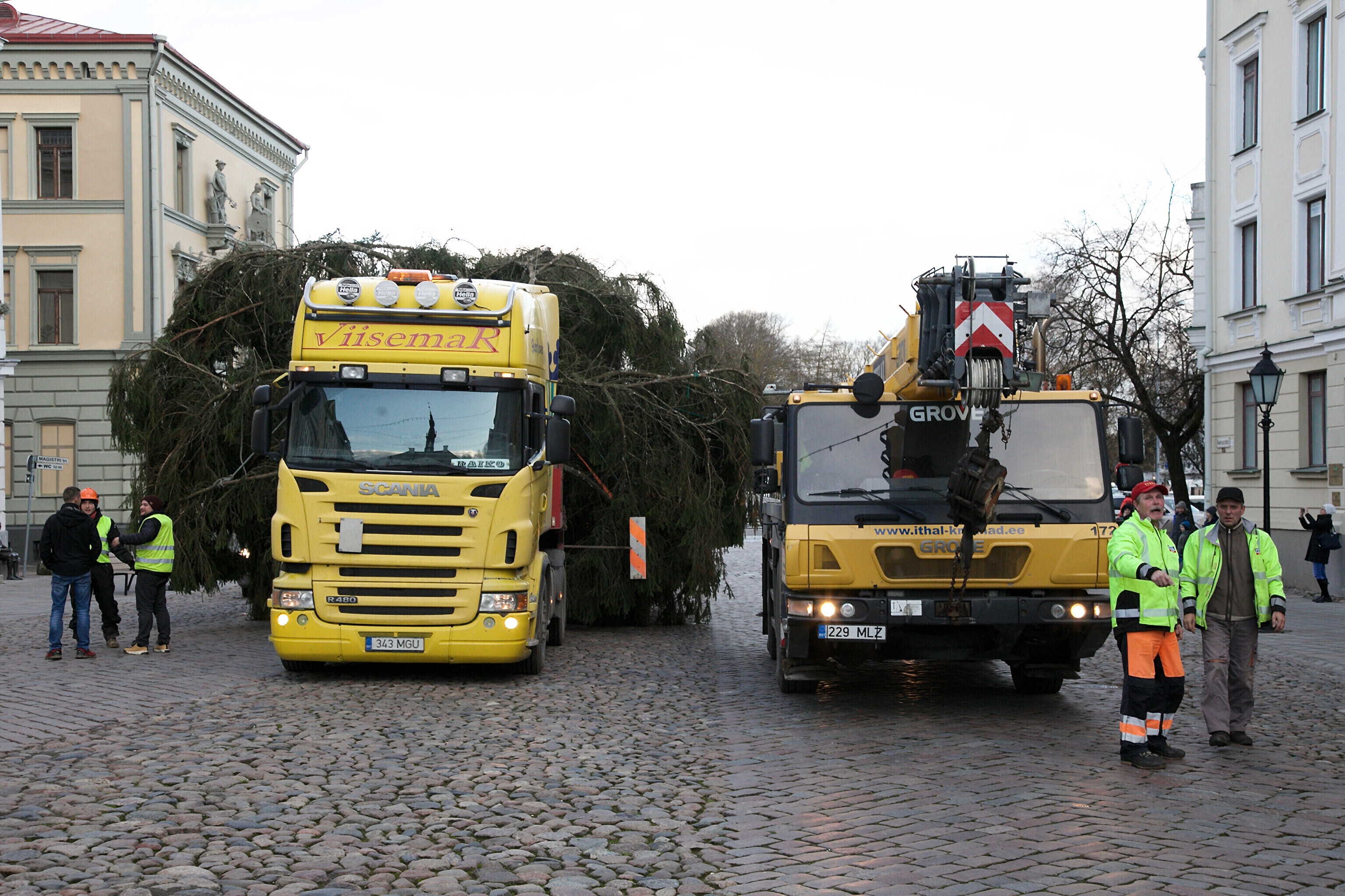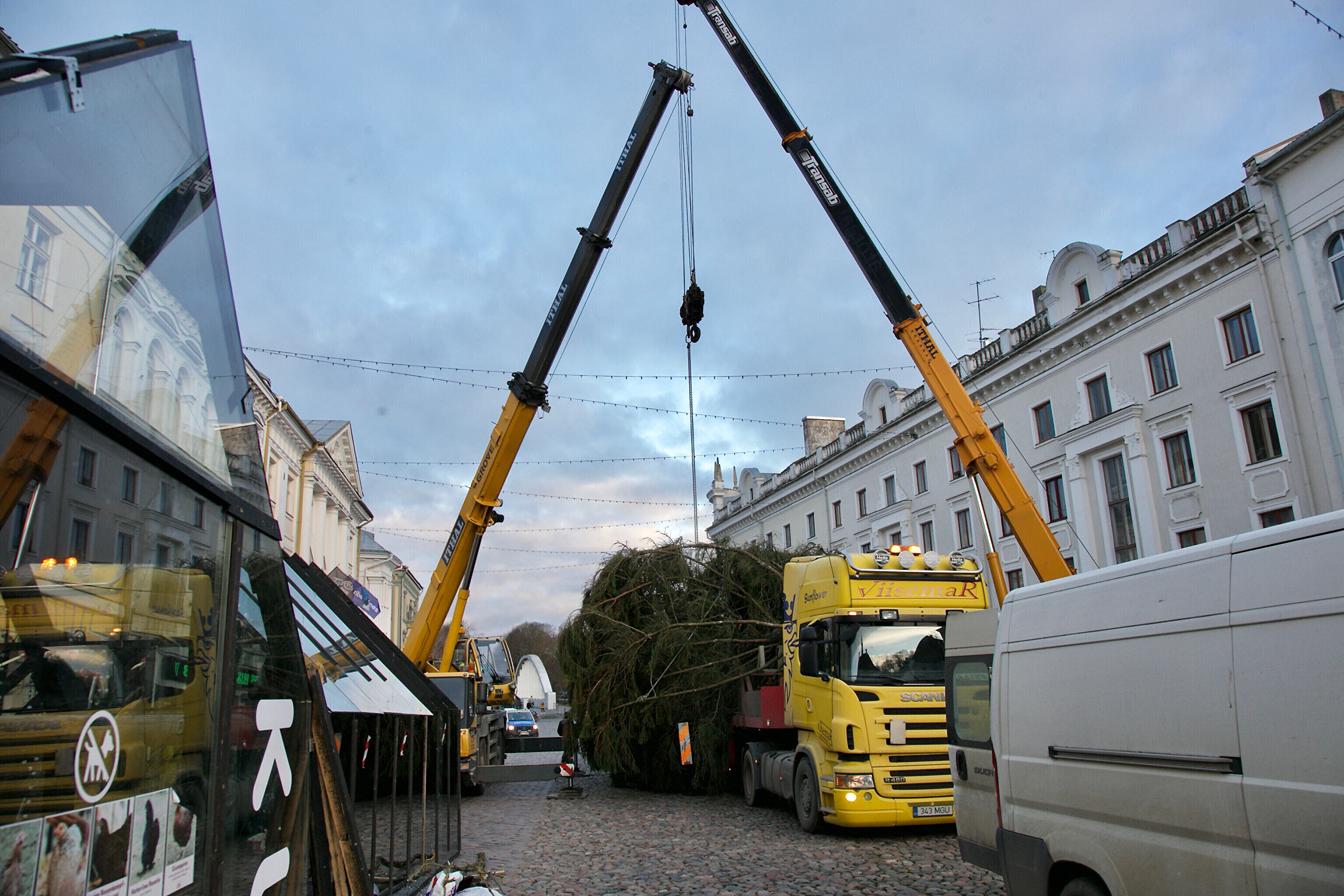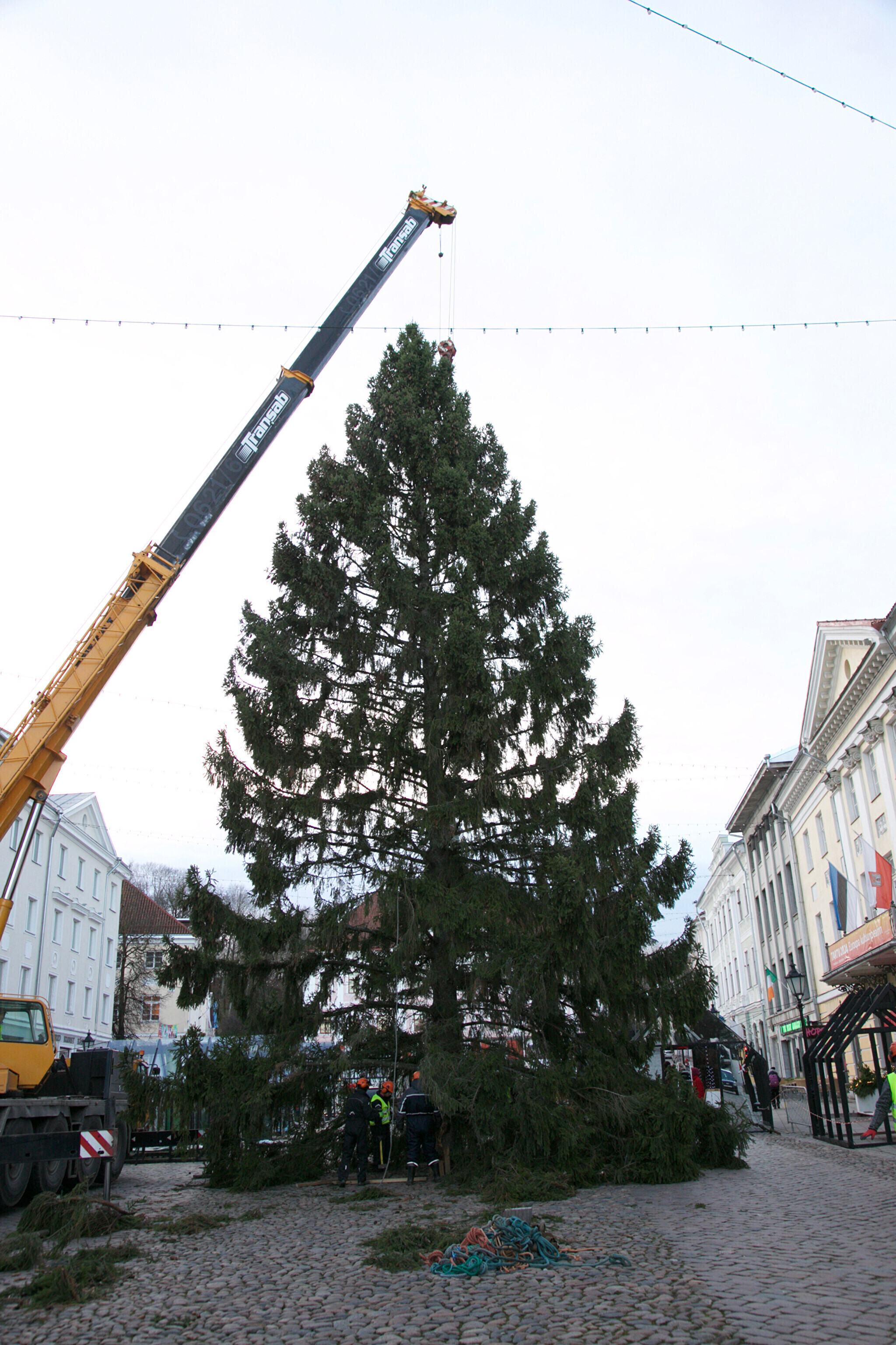 Galerii: Tartu jõulupuu jõudis kohale