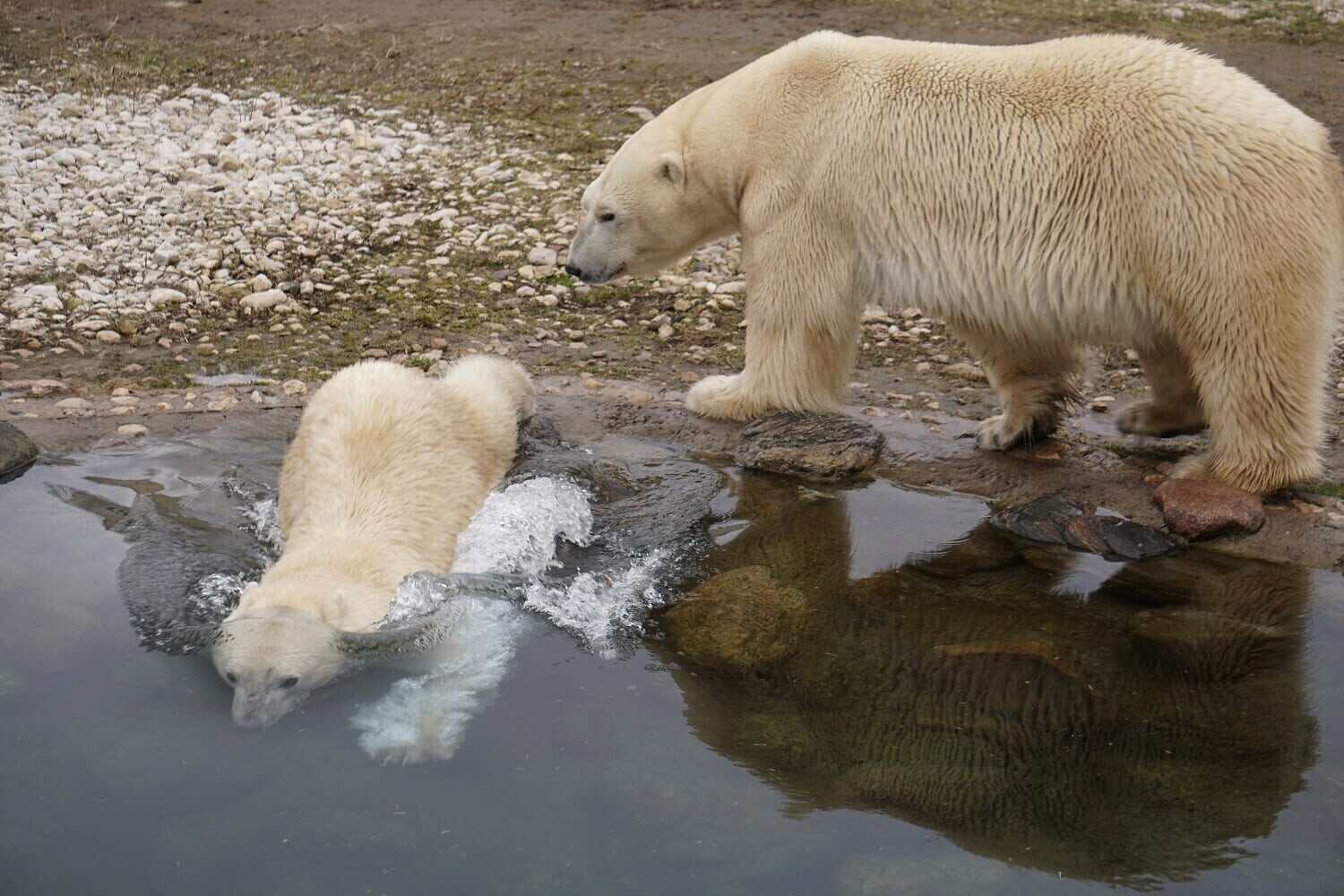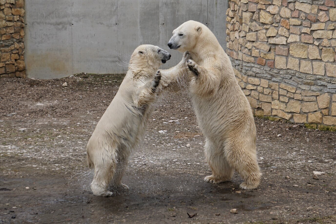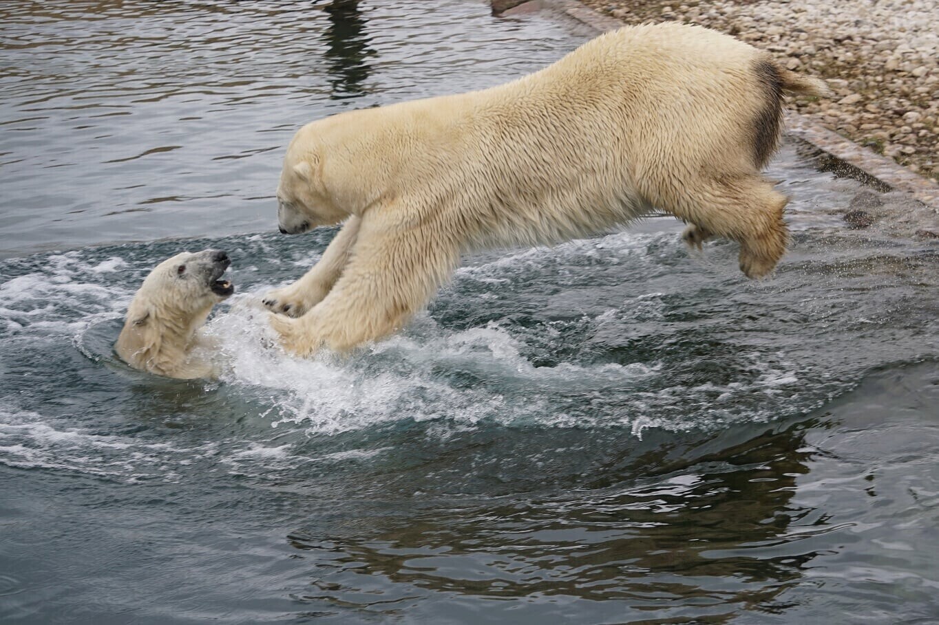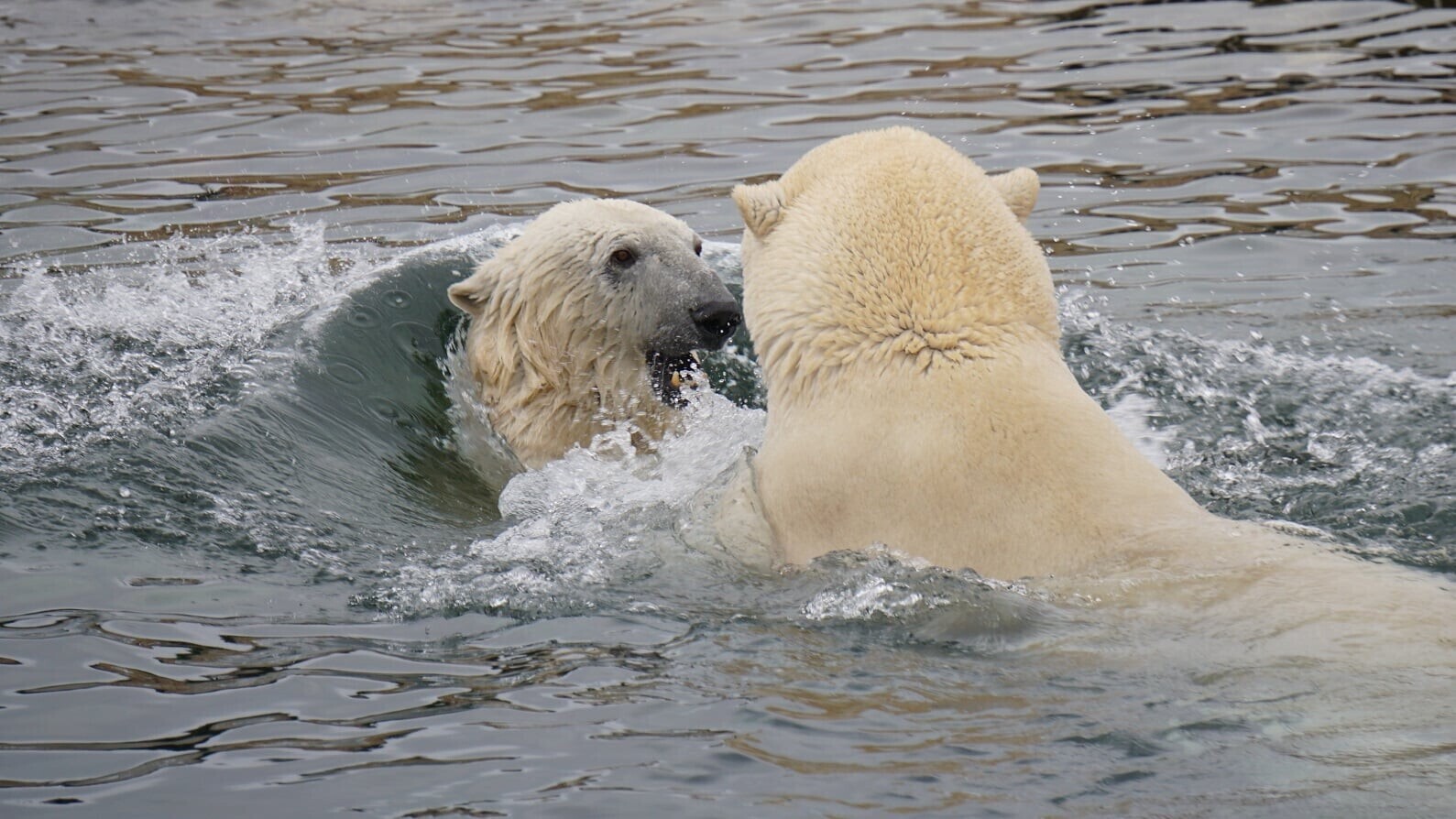 Jääkarudel oli rõõmus taaskohtumine, mille jooksul mürati ja hullati, näha võis teineteise sakutamist, tagaajamist ja vees möllamist.