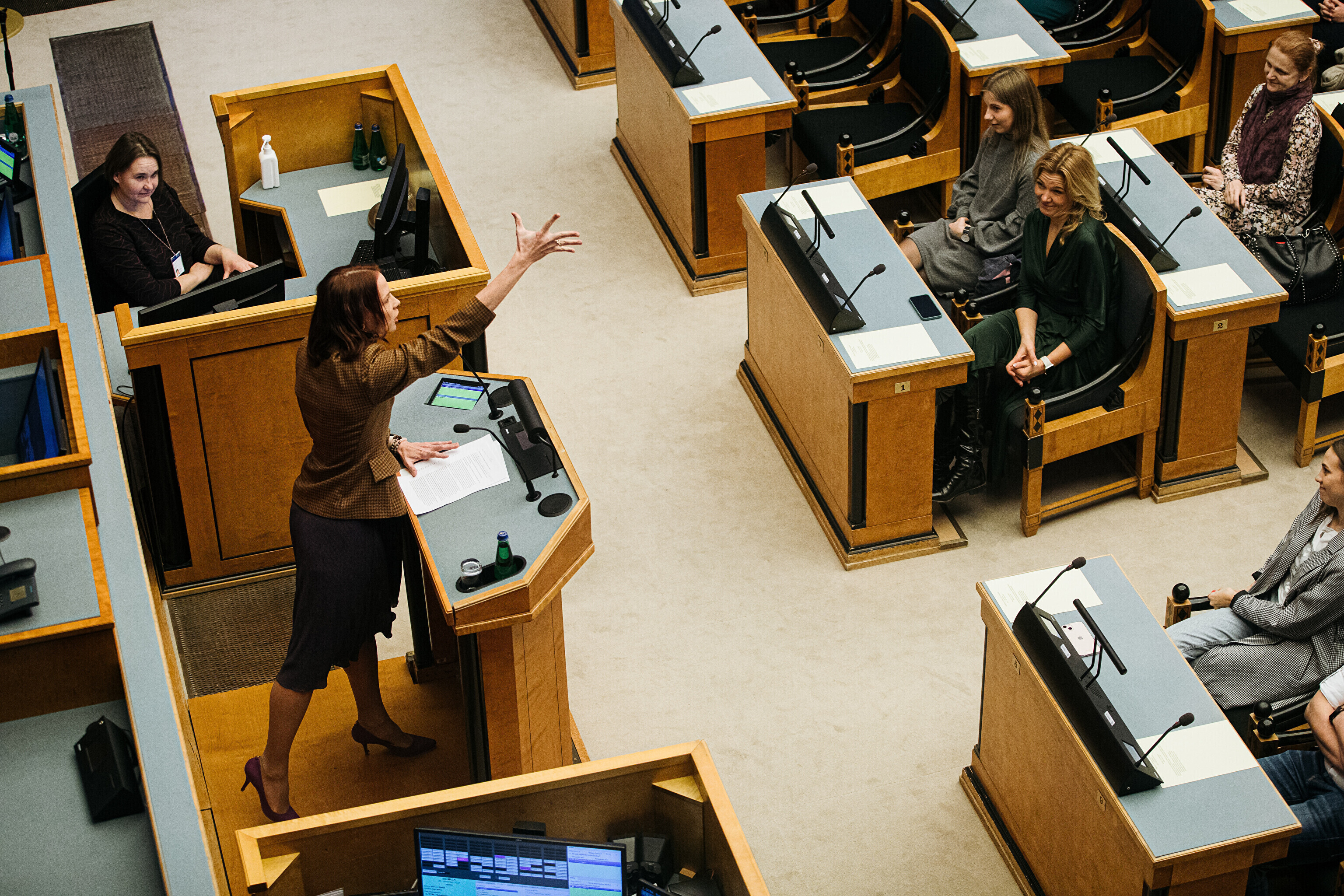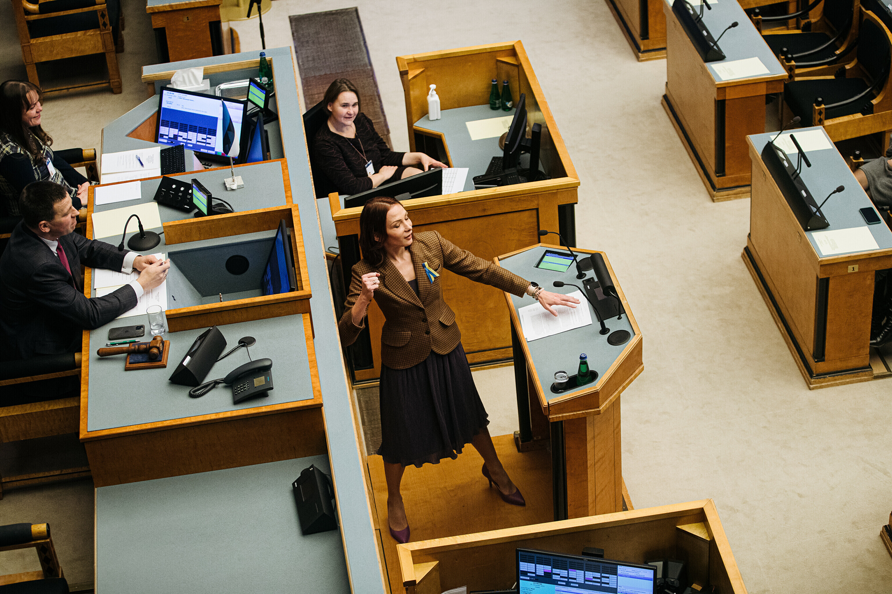 Rahvusooper Estonia töötajad viisid Sassis päeva raames riigikogus istungit läbi ning riigikogulased astusid omakorda Estonia lavalaudadele.