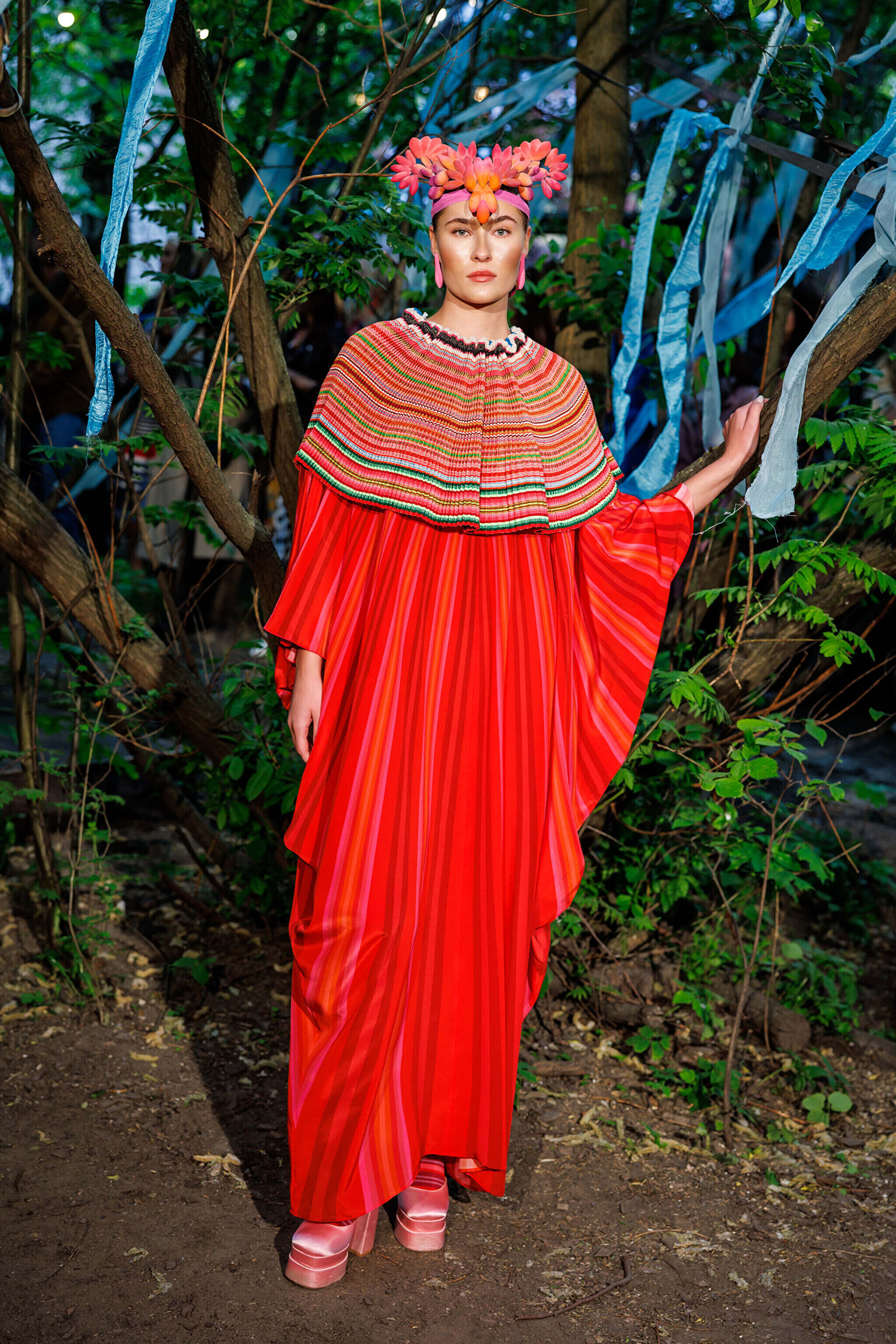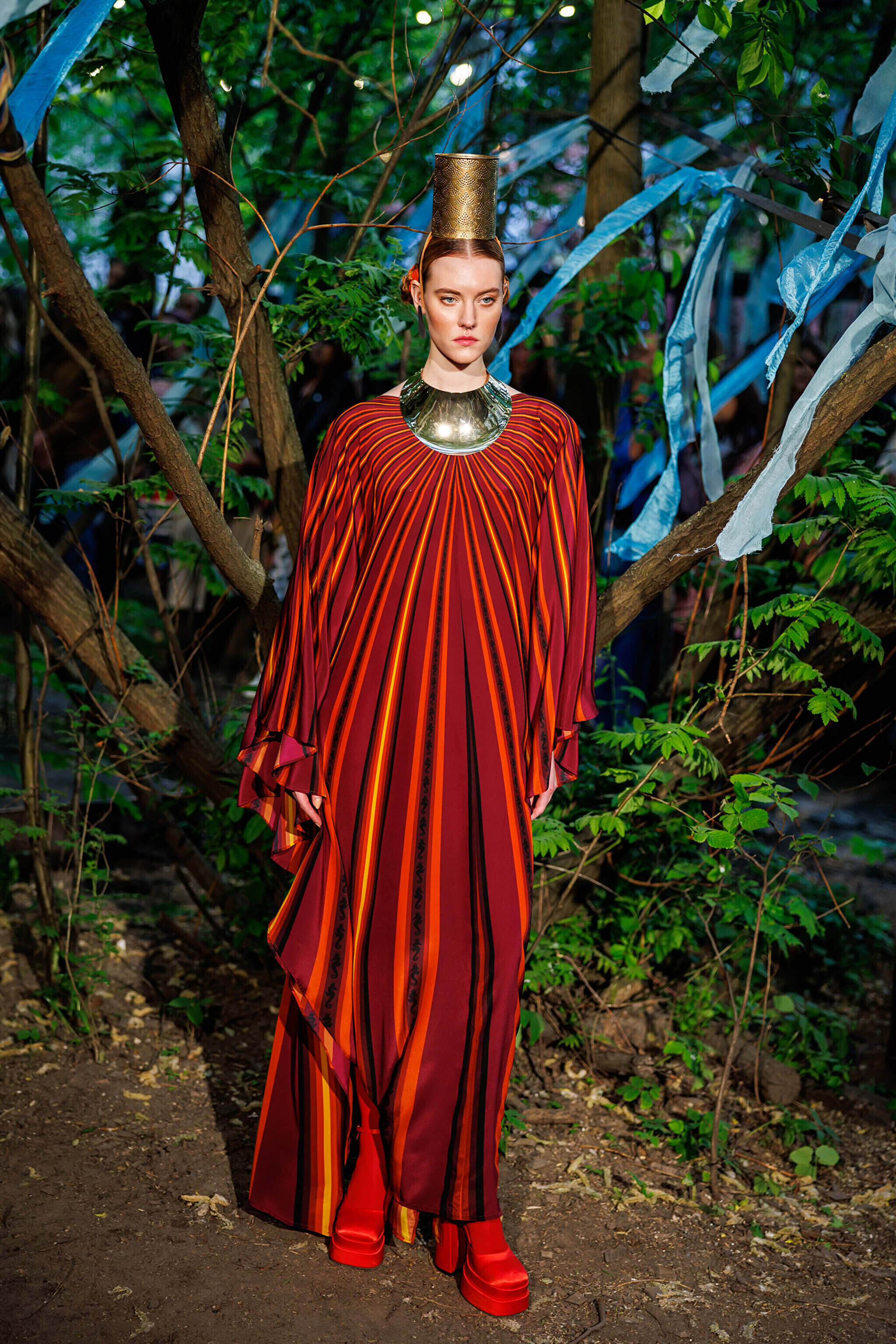 Veenre käe all leidsid rahvariiete mustrid tee õhulisele siidile. Lisaks siidist kollektsioonile esitles Veenre ka värskeid aksessuaare, näiteks tilgakujulisi kõrvamarju ja sokke, millel jätkusid siidised triibustikud.
