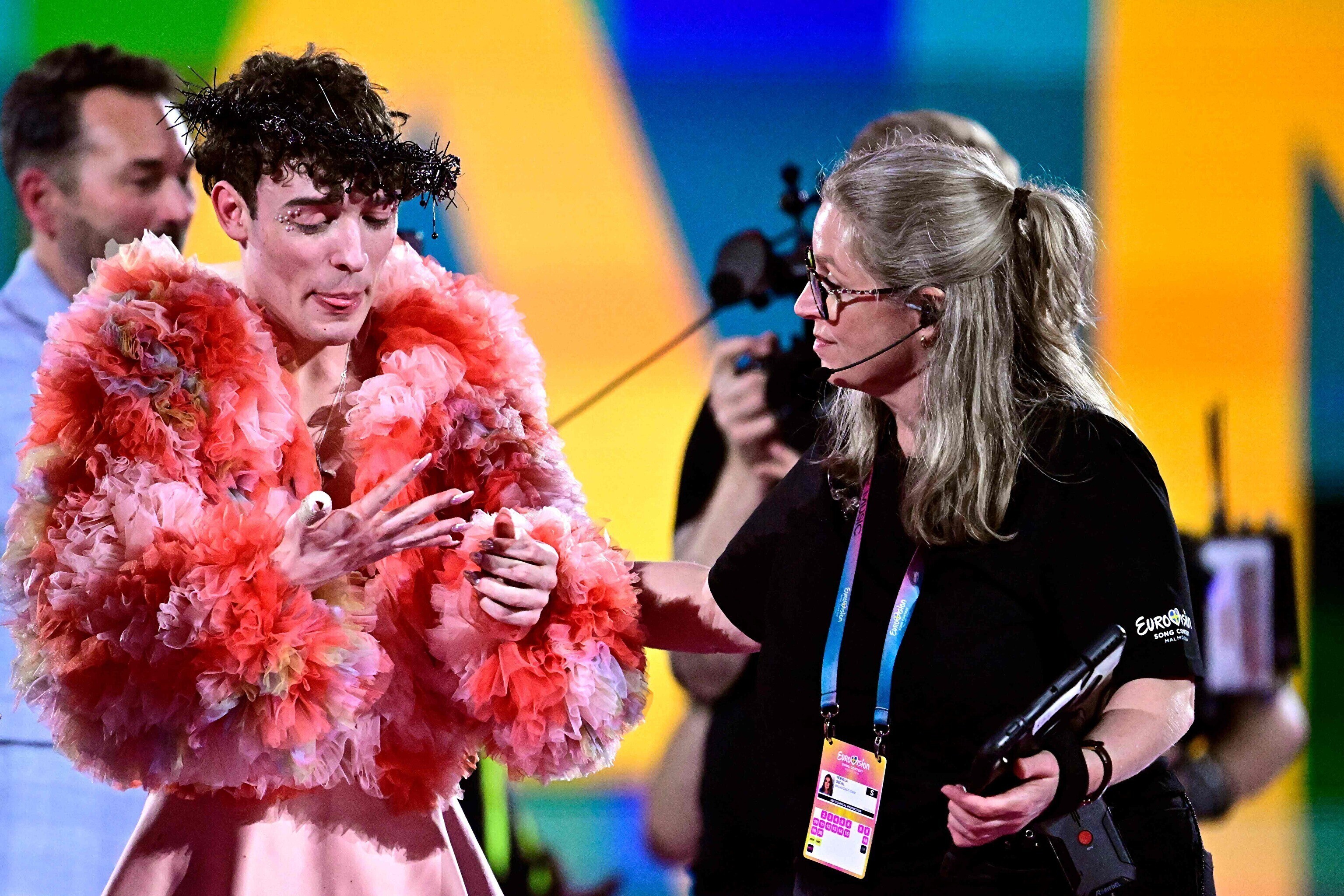 Laupäeval Malmös toimunud Eurovisiooni finaalvõistluse võiduesituse lõpus purunes Šveitsi lauljal Nemol laval Eurovisiooni karikas ja laulja sõrm sai viga.