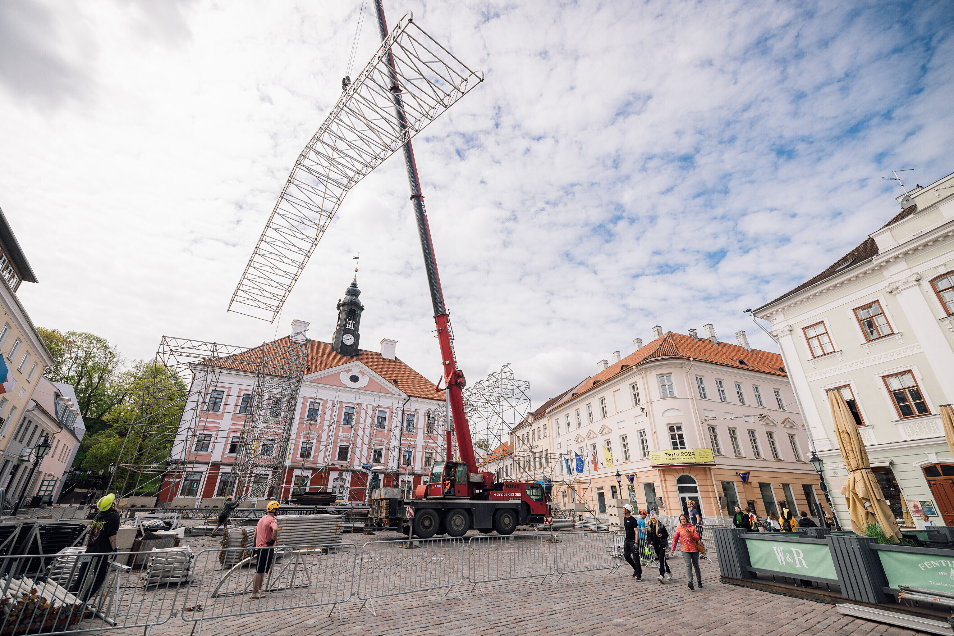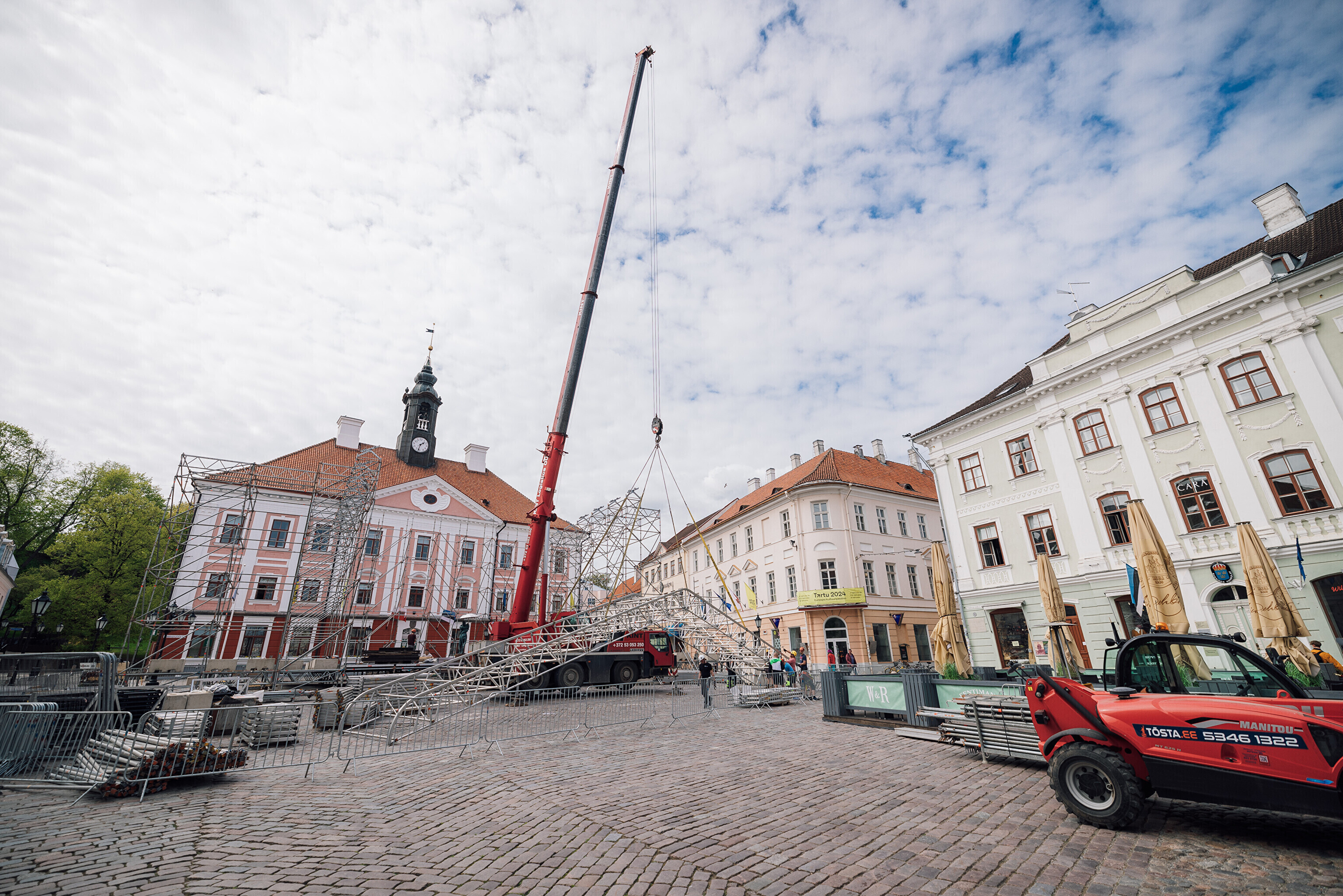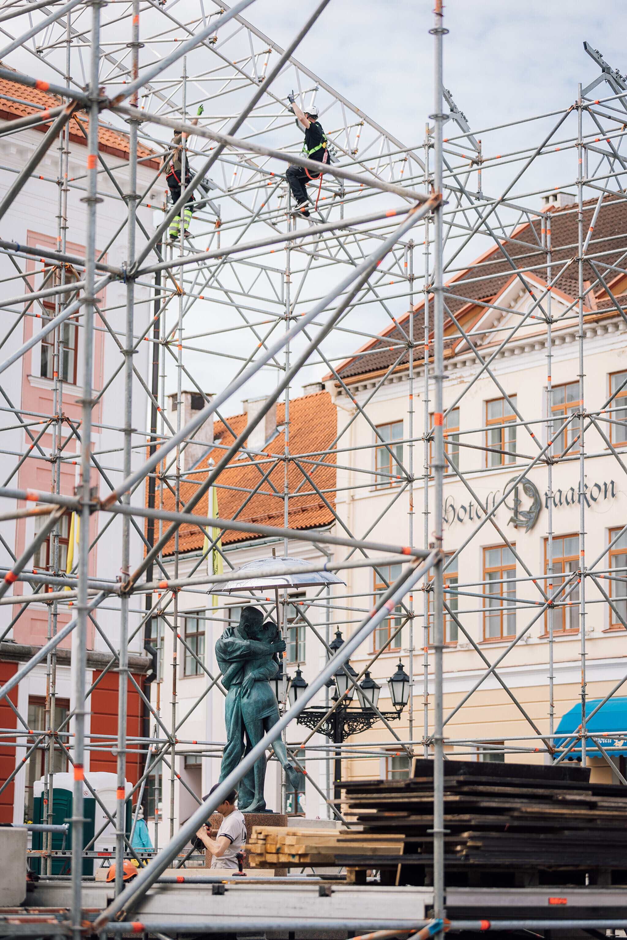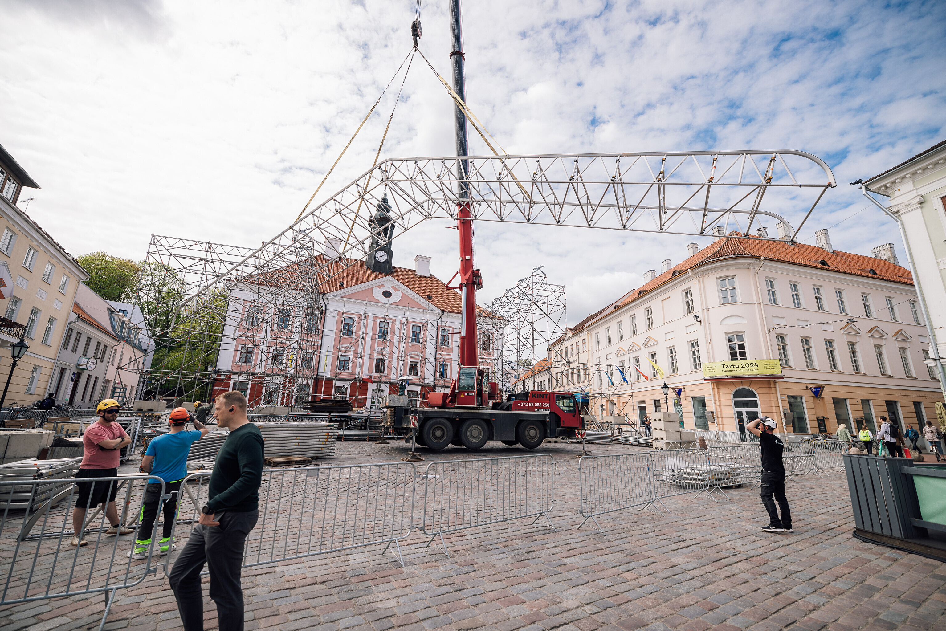 "Pea 30 meetri laiune ja kümne meetri kõrgune ehk raehoone katuseni ulatuv lavakonstruktsioon on läbi aegade suurim, mis Raekoja platsile kunagi tehtud ja sinna ära mahub," kirjeldas "Suudleva Tartu" tehniline juht Sten Arvi. "Lava kerkib suudlevate tudengitega samale tasapinnale, et Tartu kõige kuulsamad suudlejad lava keskele jääksid – nende suudlus mängib laupäevases šõus keskset rolli," lisas ta.