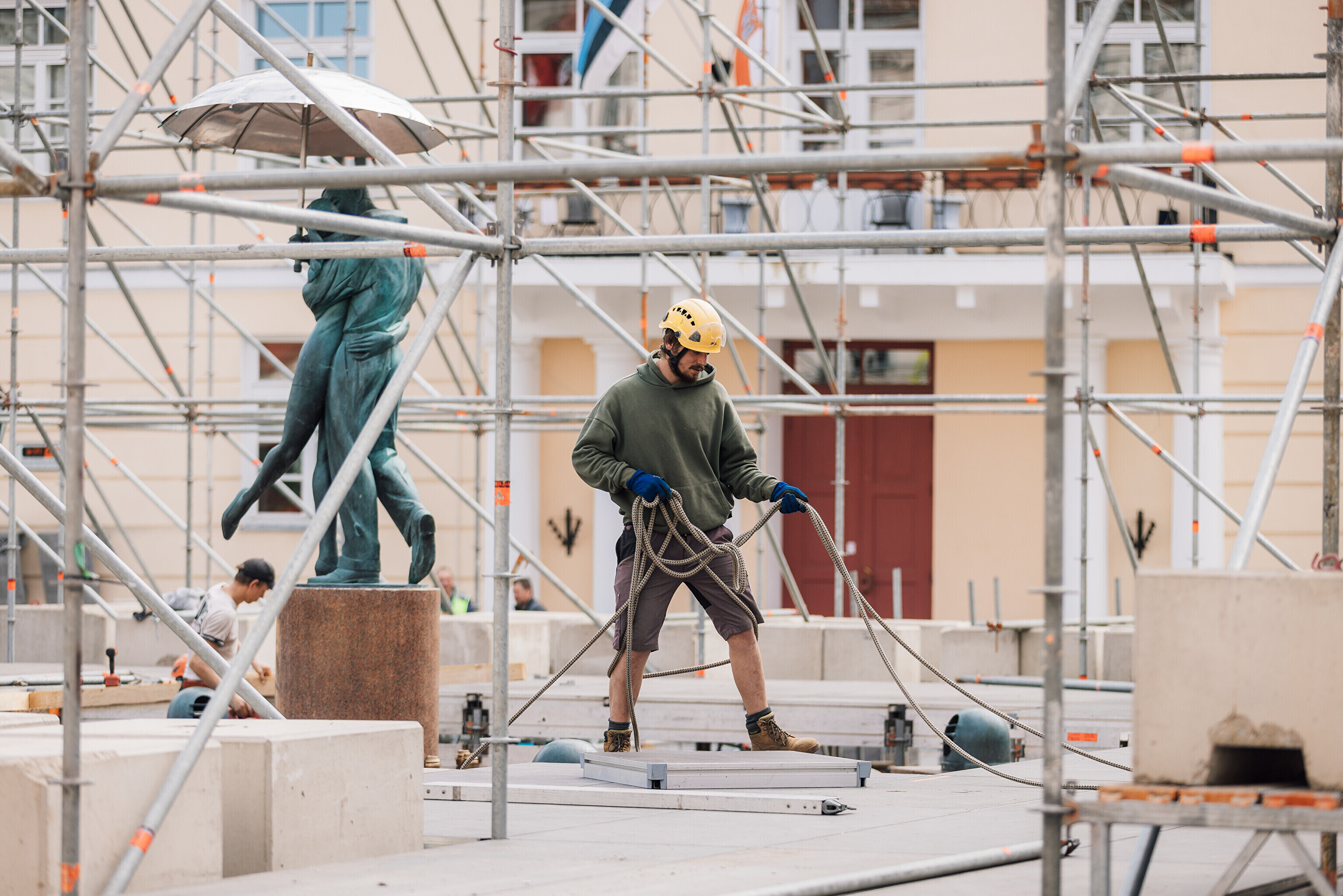 Kuigi lava kaalub ligi 75 tonni, ei ohusta see purskkaevu ega platsi kivisillutist, sest lavapõranda osa koos peale tulevate lauljate ja tantsijatega kaalub vaid kuus tonni, mis on näiteks uisuväljast hulga kergem. "Kõige õrnem osa ehk purskkaevu äär on kaitstud," rõhutas Arvi.