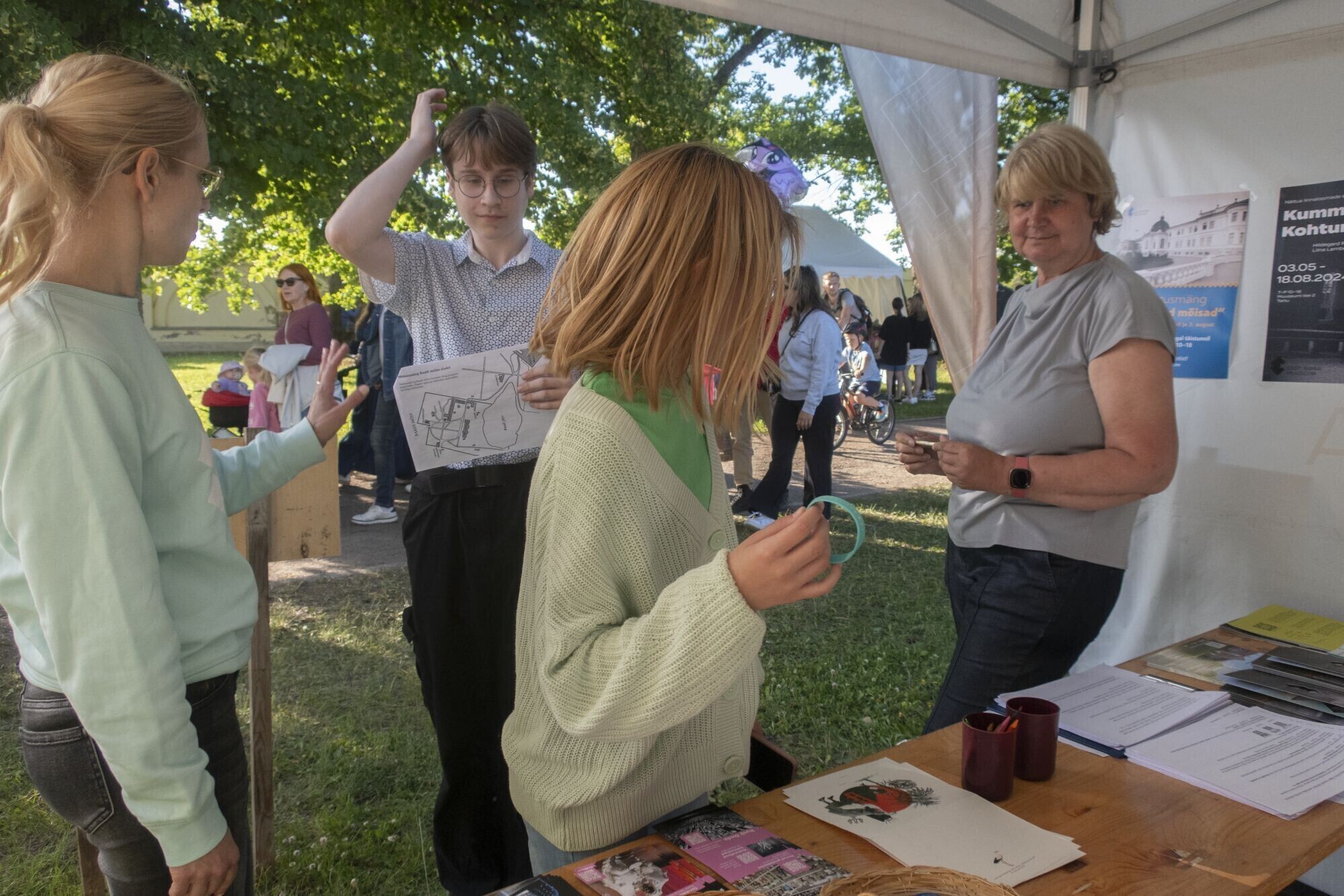 Üks jaanipäeva traditsioone on korjata lilli. ERM-i telgis sai endale valmistada ühe kaunima suvelille – rukkilille. Peorõivaste täienduseks sai punuda käepaelu nii rahvus- kui suvevärvides. ERM-i giid viis huvilisi aga Raadi ajalugu avastama.