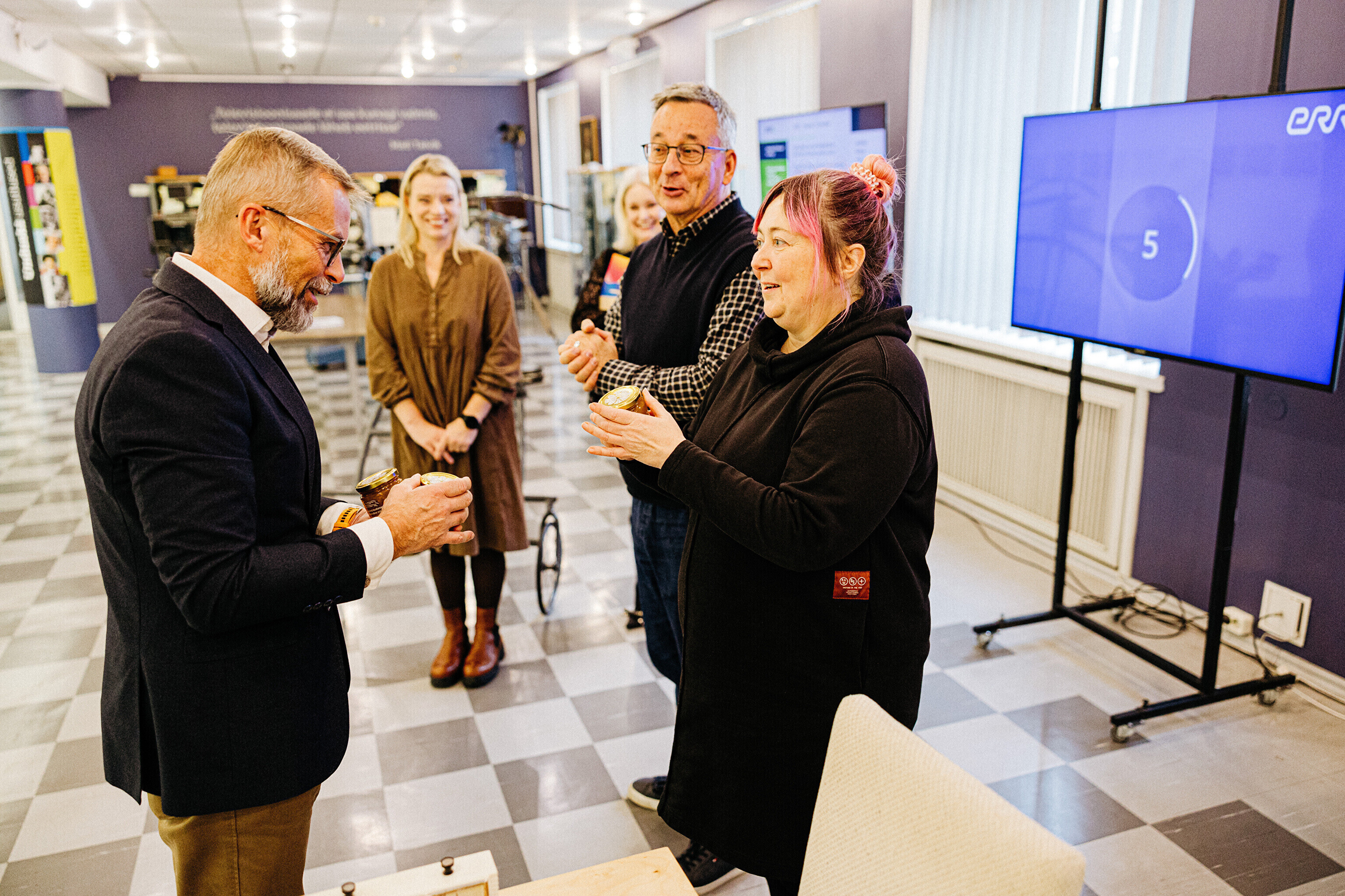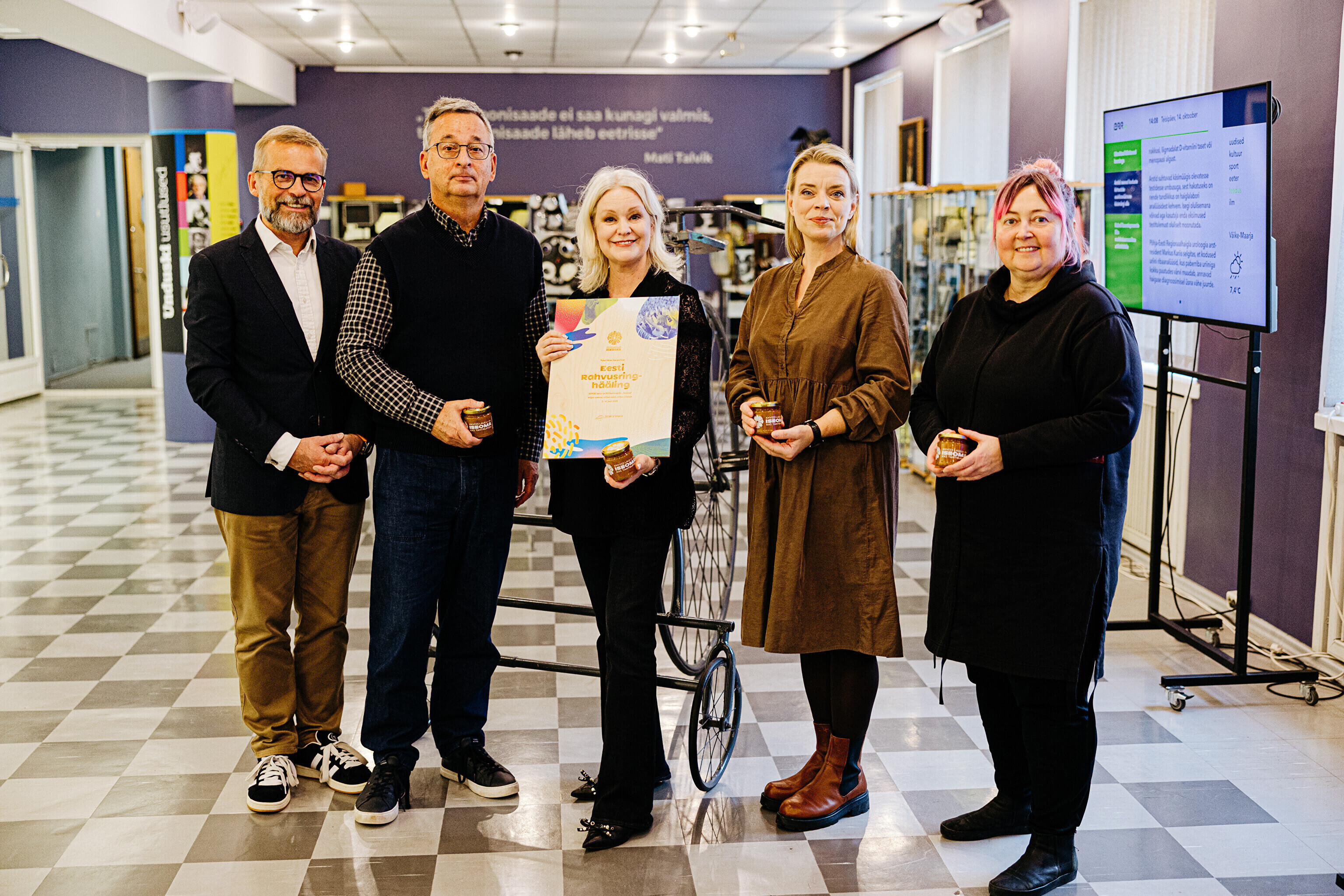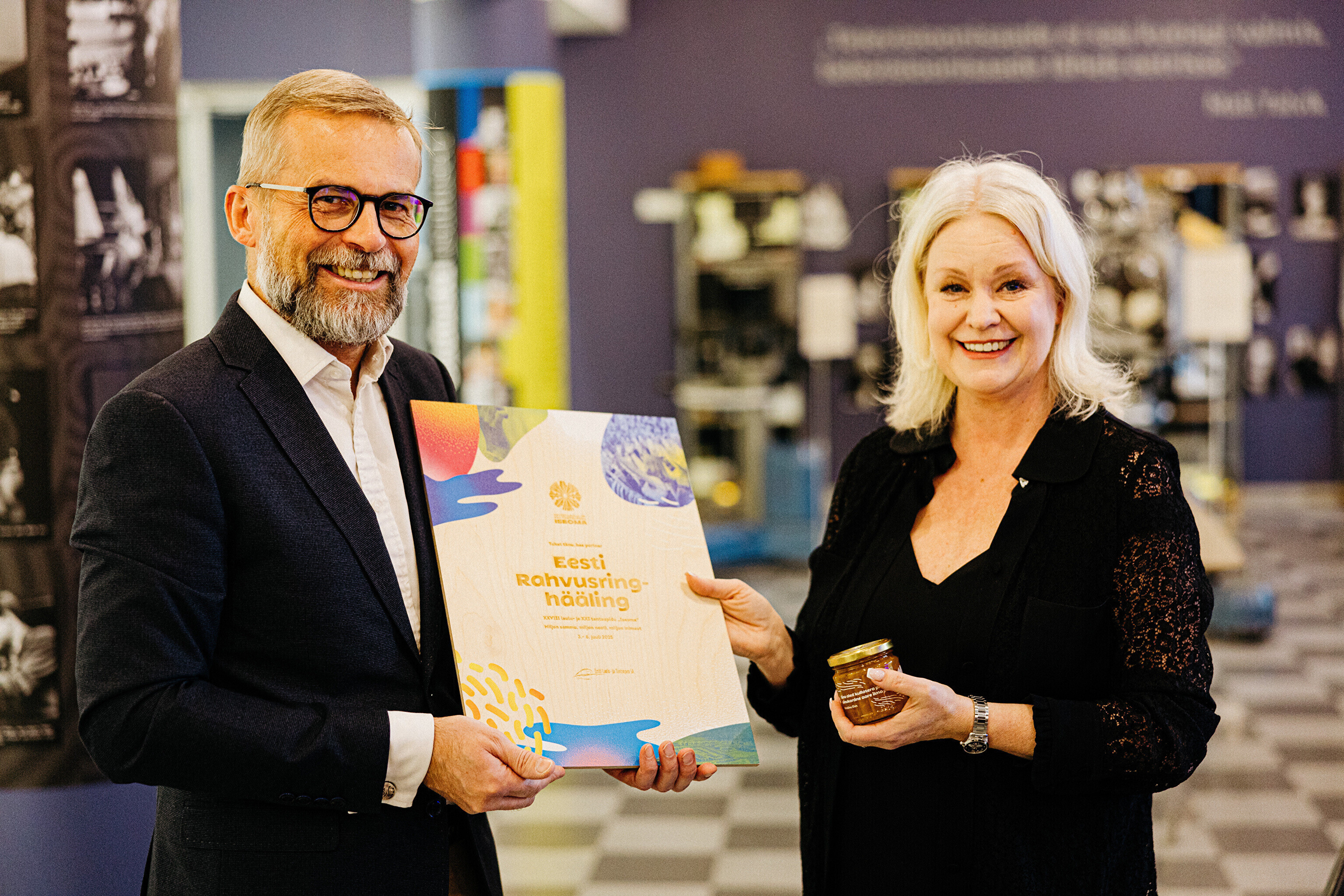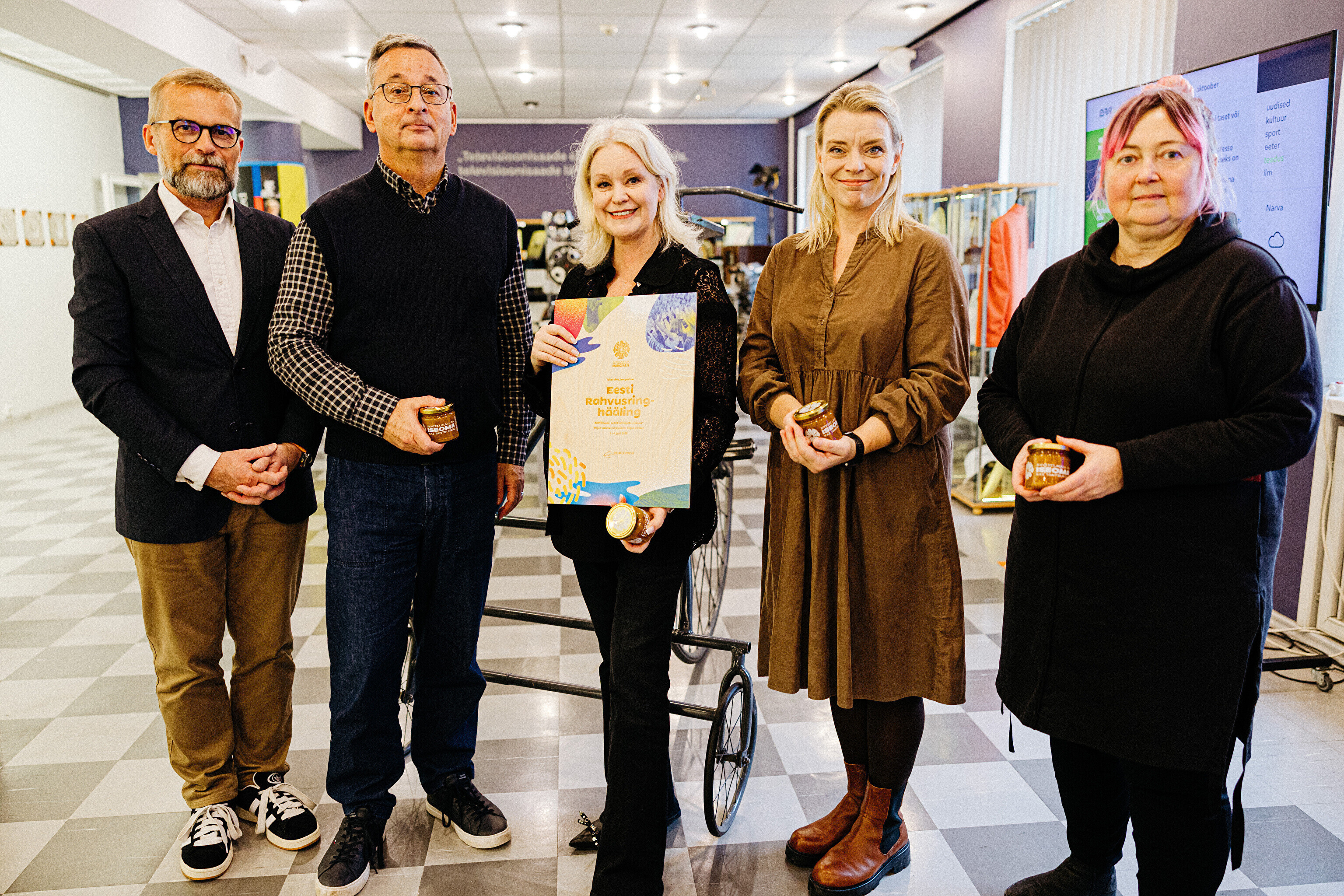 Sel teisipäeval toimunud kohtumisel andis laulu- ja tantsupeo teabejuht Sten Weidebaum rahvusringhäälingu töötajatele üle tänusõnad koos maitsva murakamoosiga korraldusmeeskonna ja peoliste nimel. Teda võtsid telemajas vastu kõigi peoülekannete eest ERR-is vastutanud Margus Saar, rahvamuusikapeo ja rongkäigu produtsent Kadi Priske ning saatejuhtide ja toimetajate esindajana peol vihmas ja päikeses intervjuusid teinud Grete Lõbu ja Anu Välba.