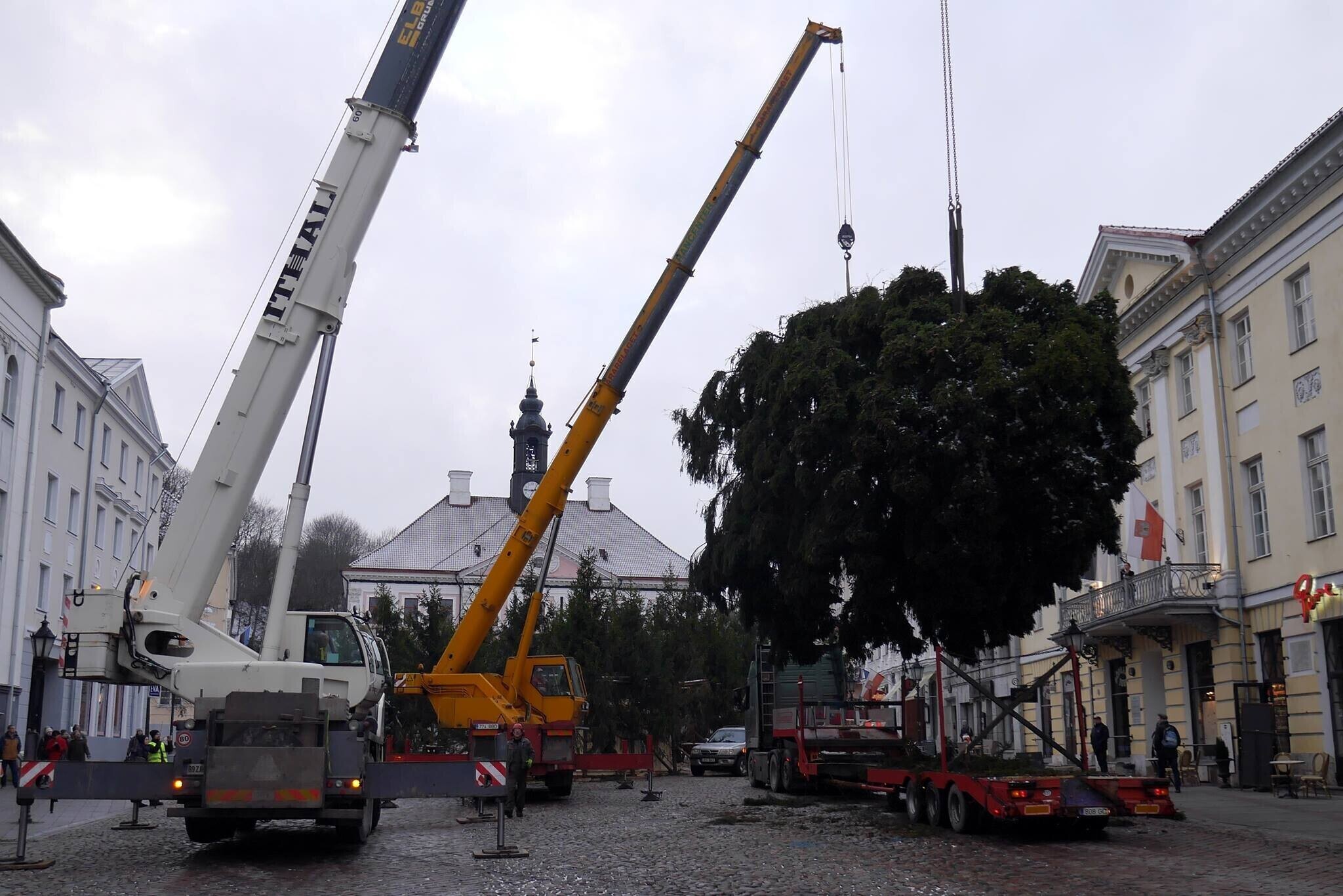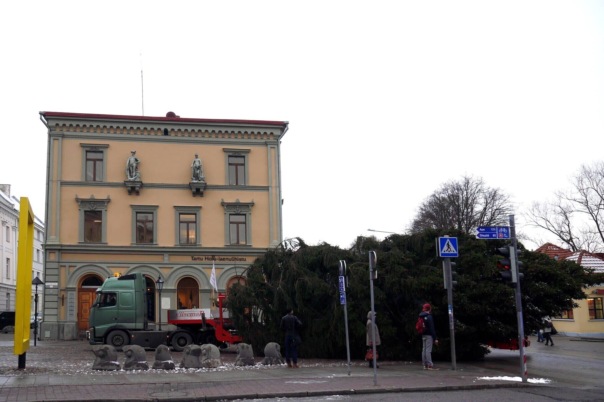 Eile püstitati Tartu raekoja platsile tänavune jõulukuusk, mis toodi kohale Puhja vallast Härjanurme külast.