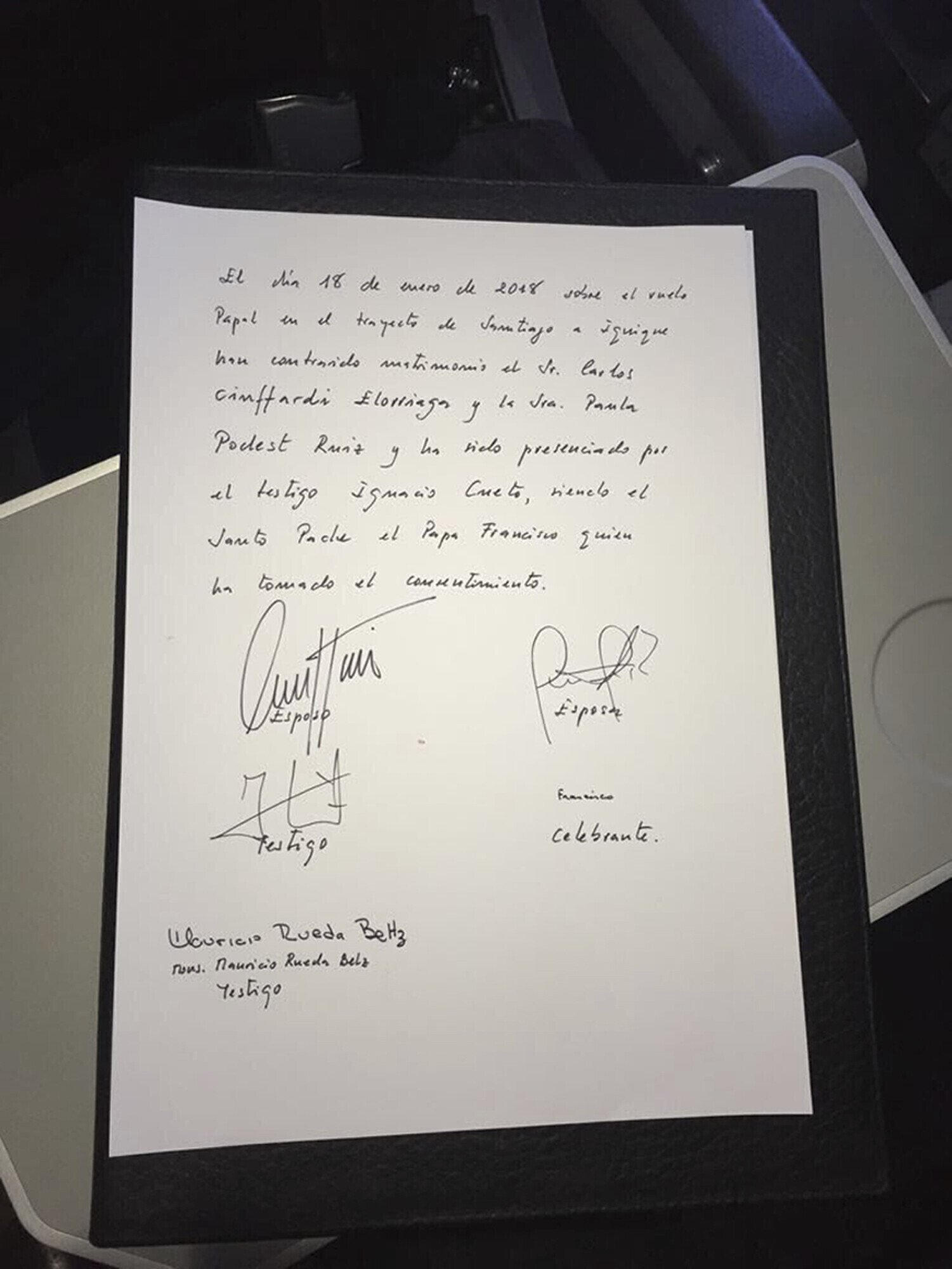 Paavst Franciscus pani täna lendava lennuki pardal kiriklikult paari Tšiili lennufirma pardateenindajad, tehes sellega kõigi aegade esimese õhulaulatuse.
