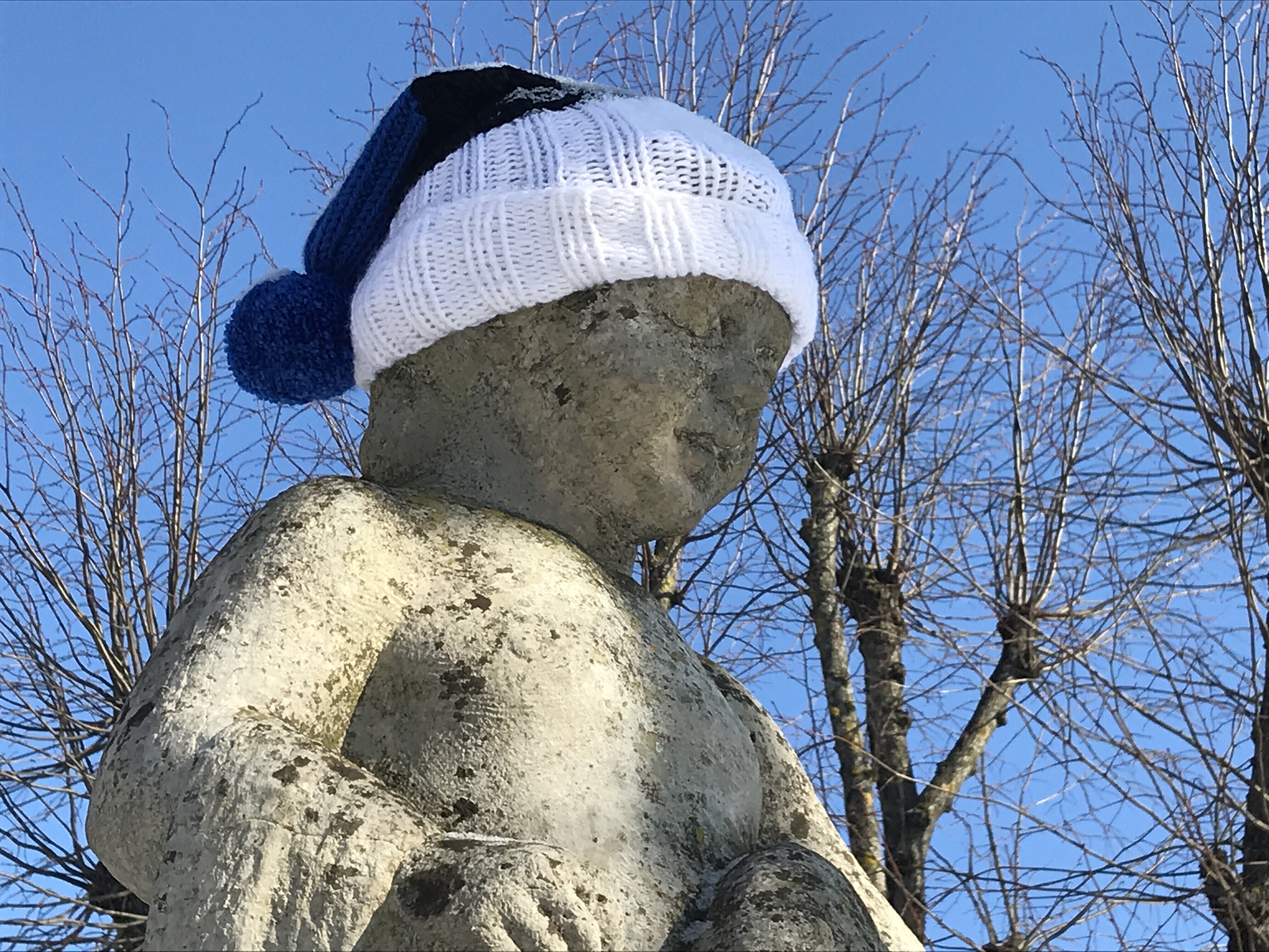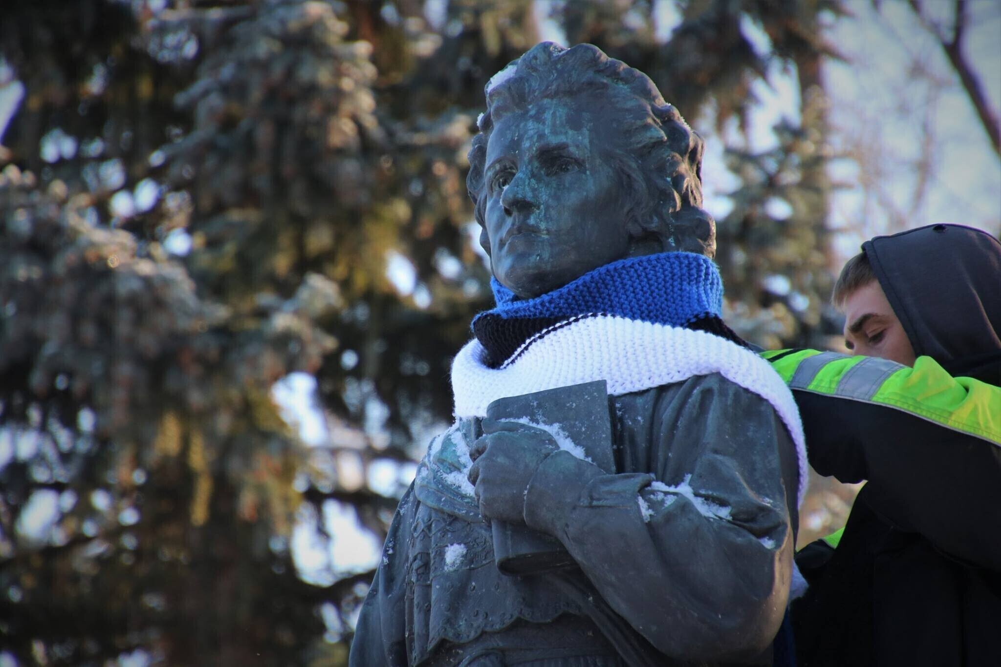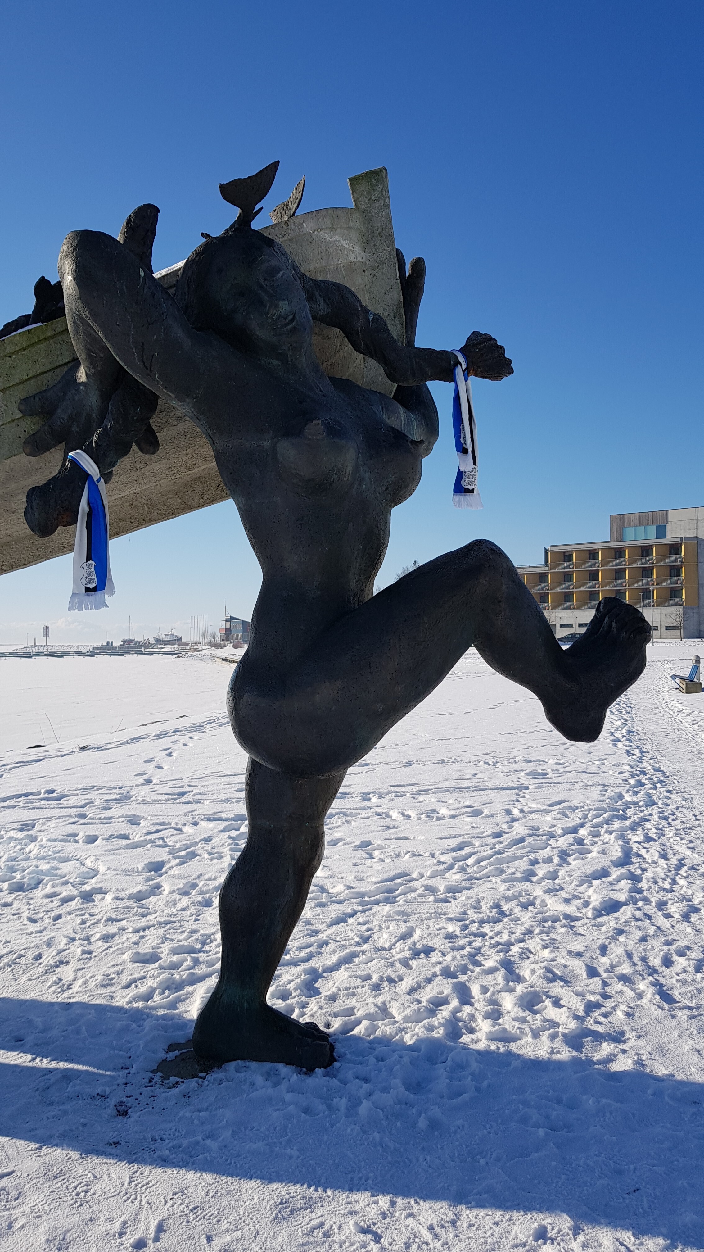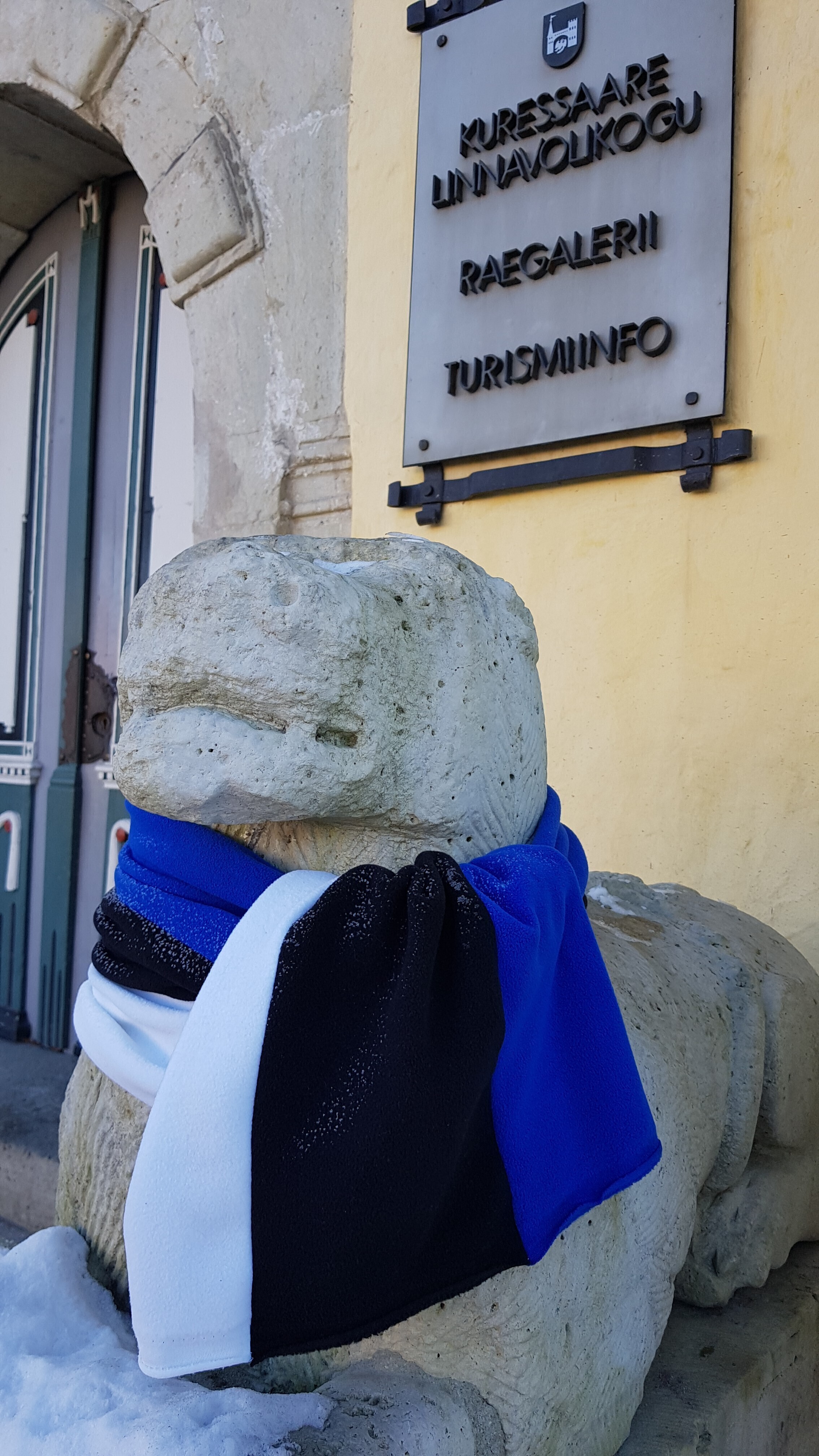 Neljapäeval, 22. veebruaril saavad üle Eesti enam kui 20 tuntud skulptuuri vabariigi 100. sünnipäeva auks kaela sinimustavelged sallid. Mõnele saab sama tooni mütski pähe pandud.