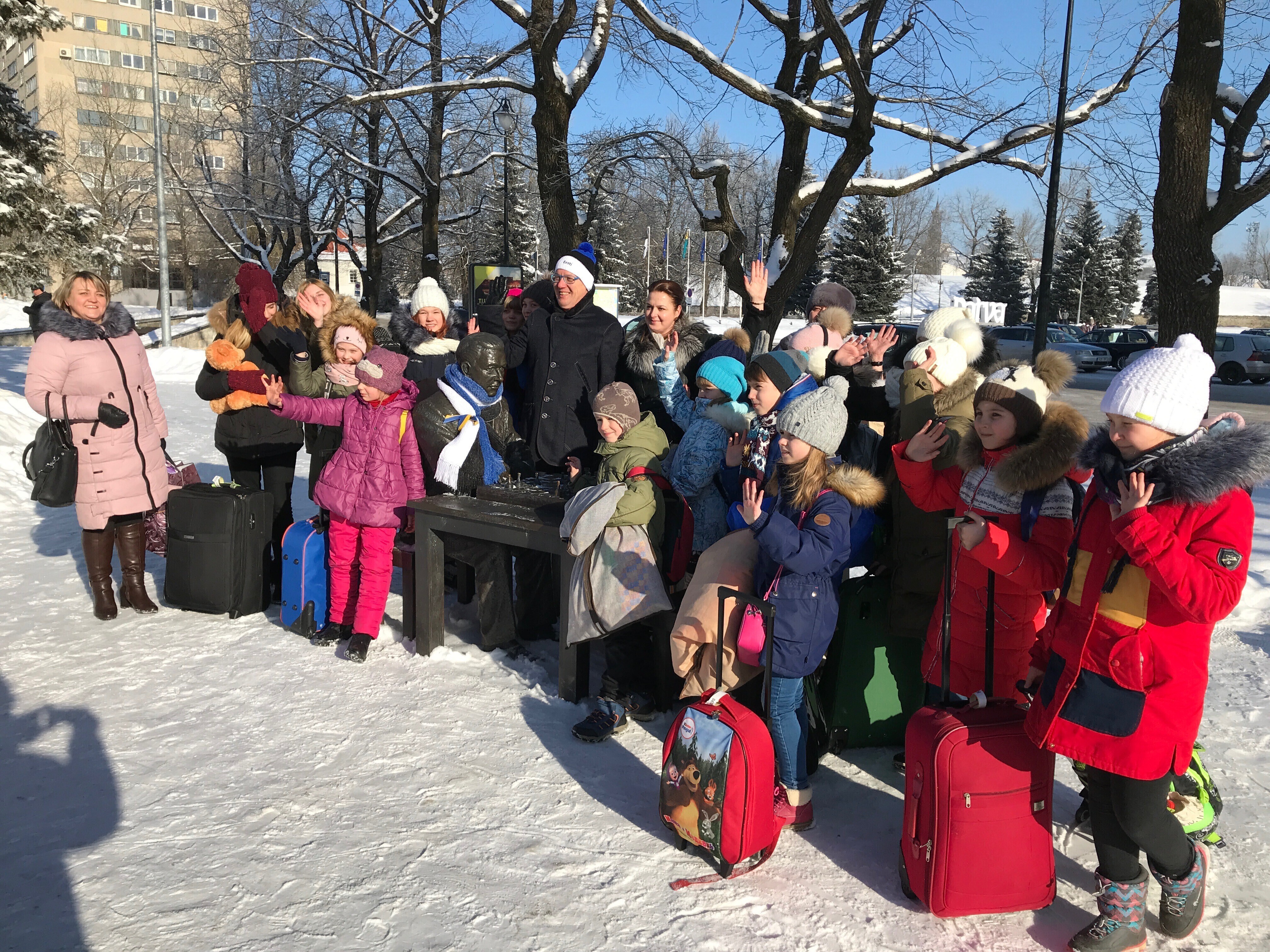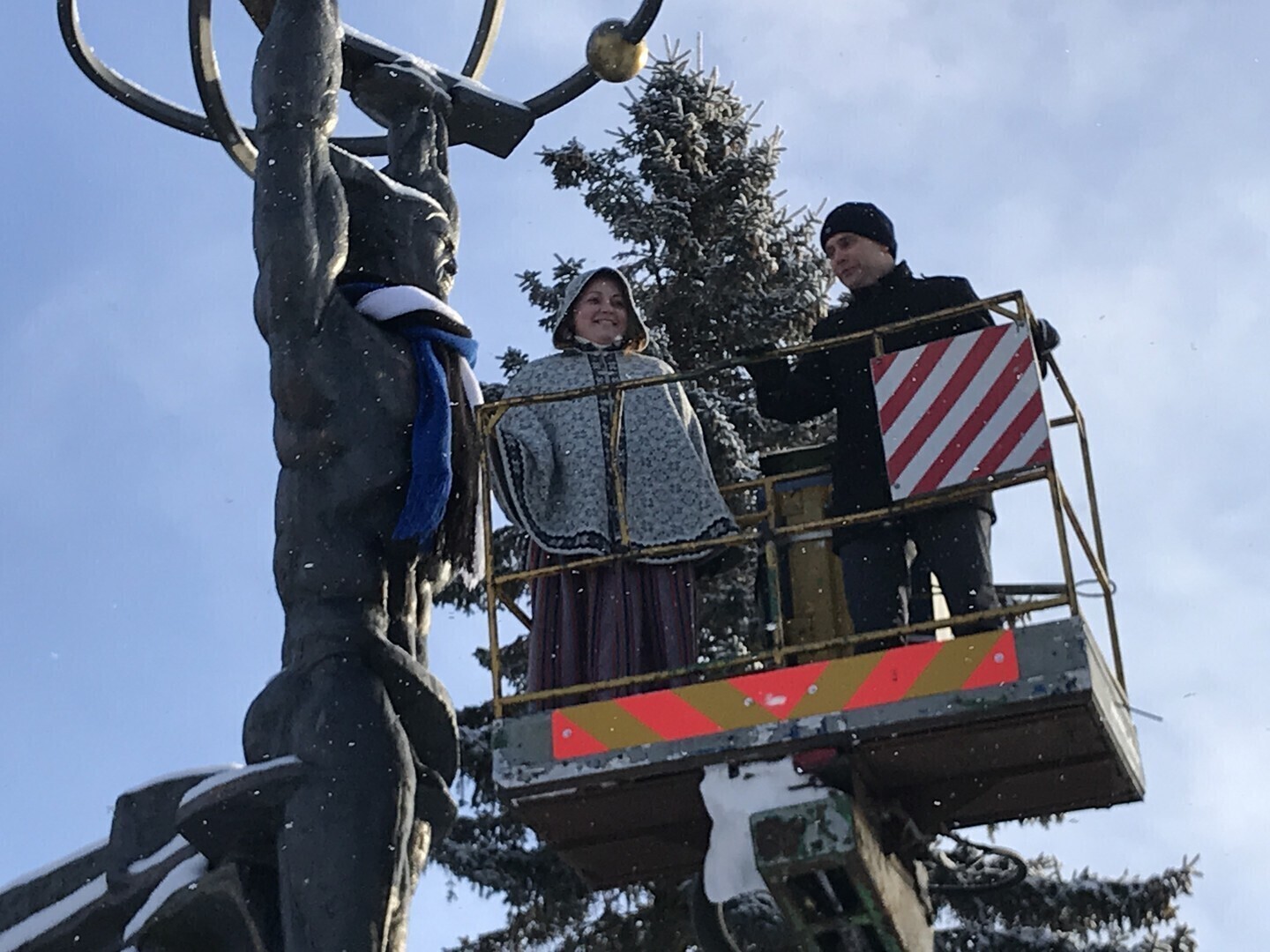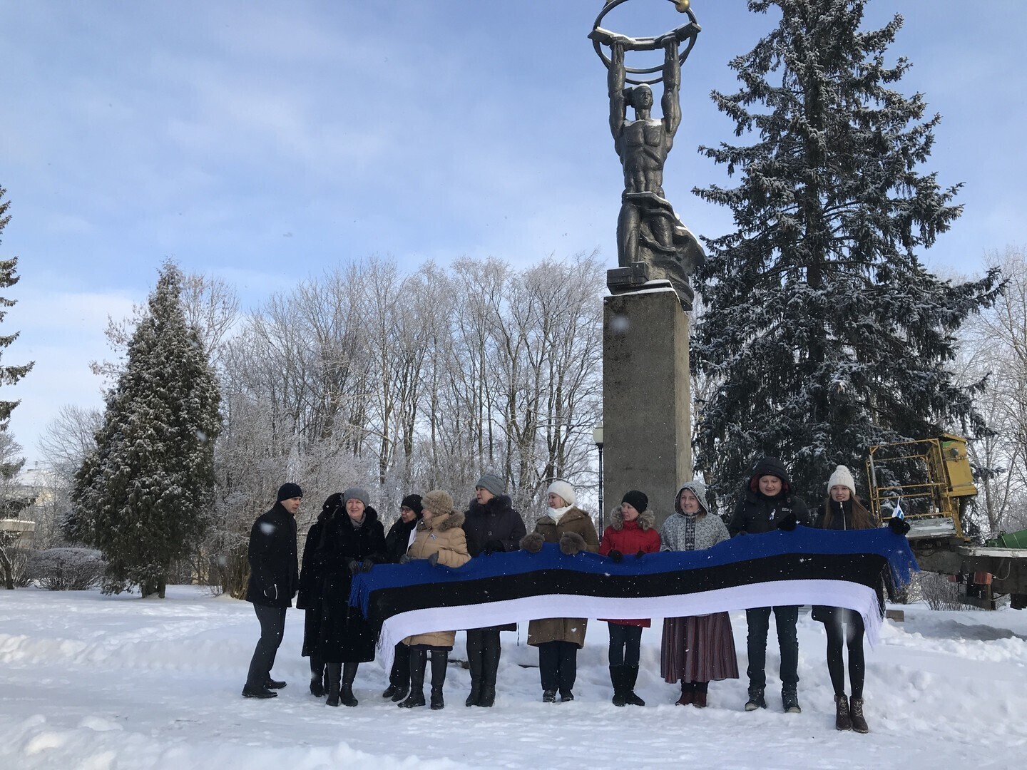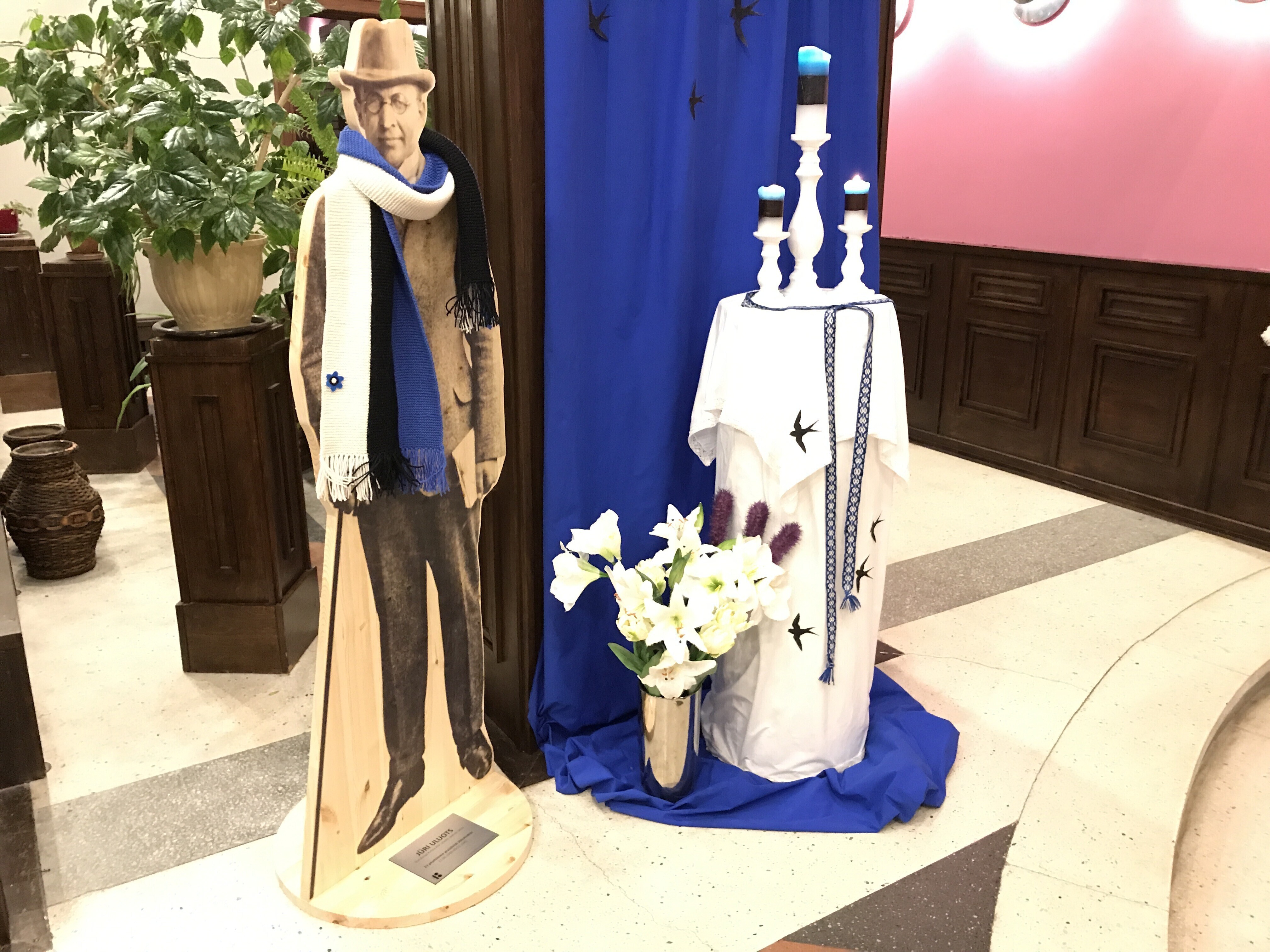 Neljapäeval, 22. veebruaril saavad üle Eesti enam kui 20 tuntud skulptuuri vabariigi 100. sünnipäeva auks kaela sinimustavelged sallid. Mõnele saab sama tooni mütski pähe pandud.