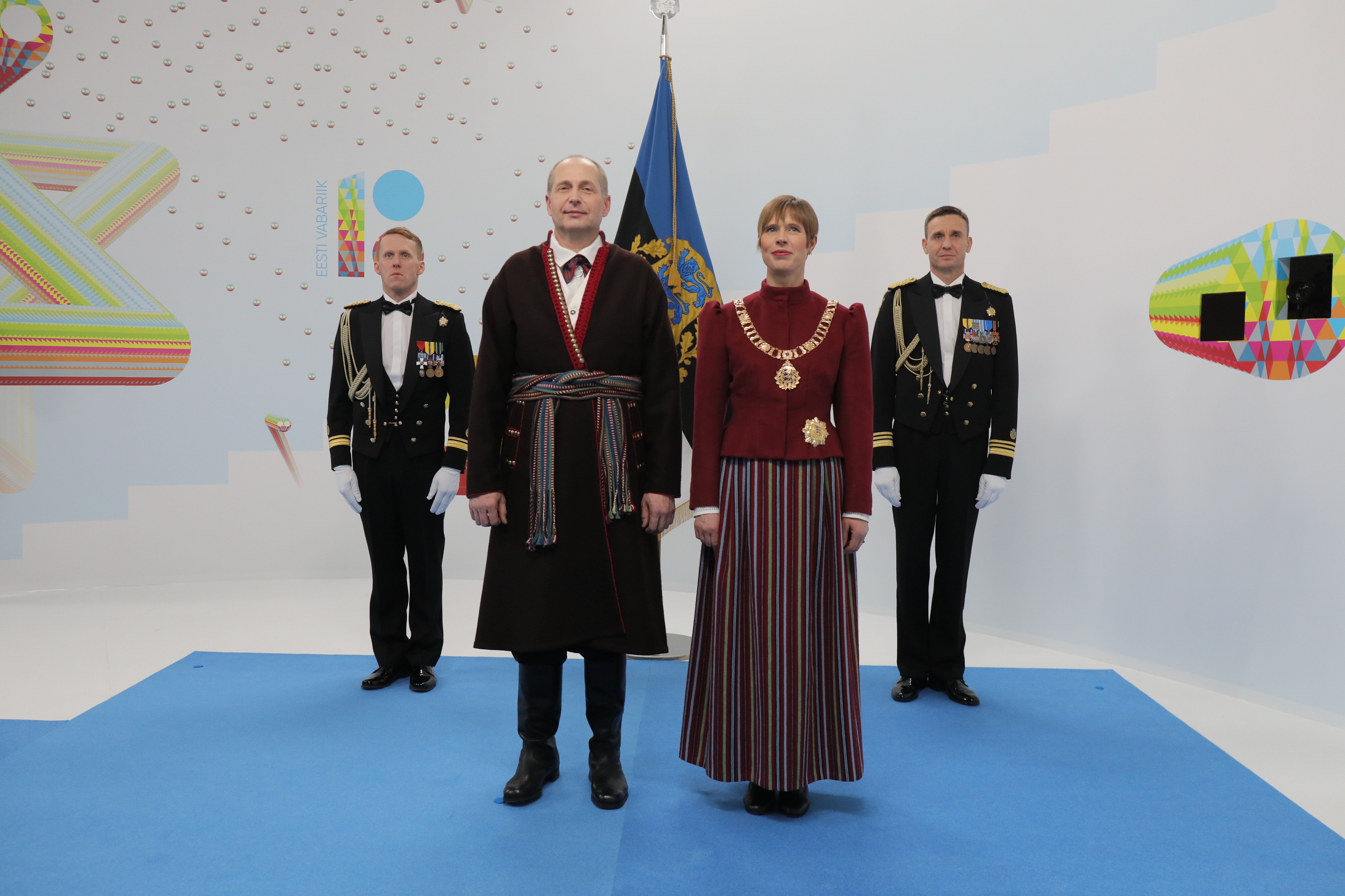 President Kersti Kaljulaid kannab täna õhtul Tori kihelkonna rahvarõivaid. Kaljulaidi seljas on pidulik variant Tori rahvarõivastest ning nende tegumood on pärit umbes saja aasta tagusest perioodist. Presidendi riietuse hulka peaksid käima ka tanu, põll ja ehted, aga kuna presidendi ametikett on nii väärikas, on need elemendid täna õhtul ära jäetud.