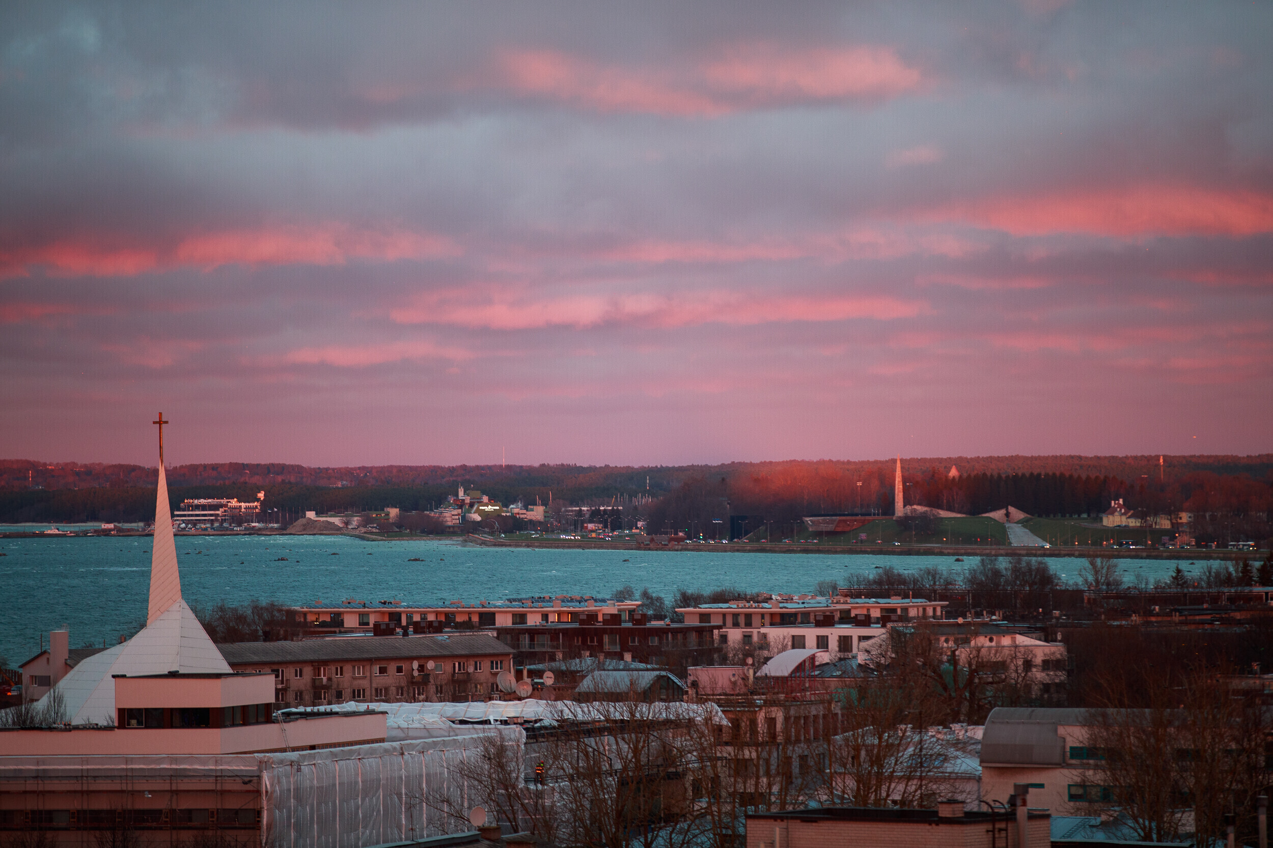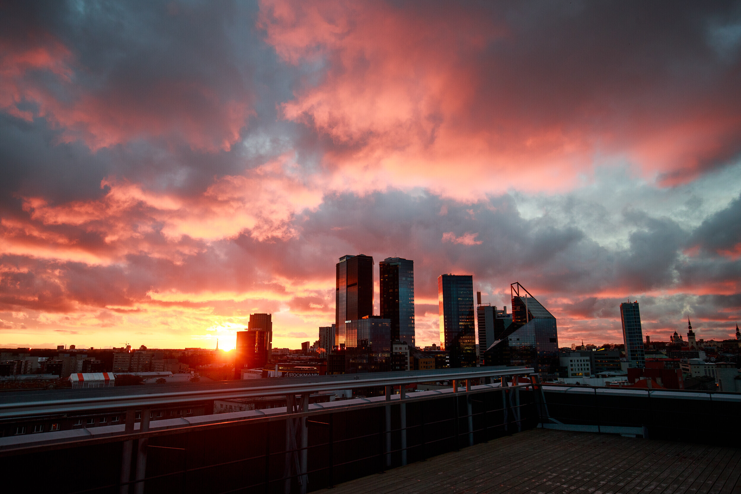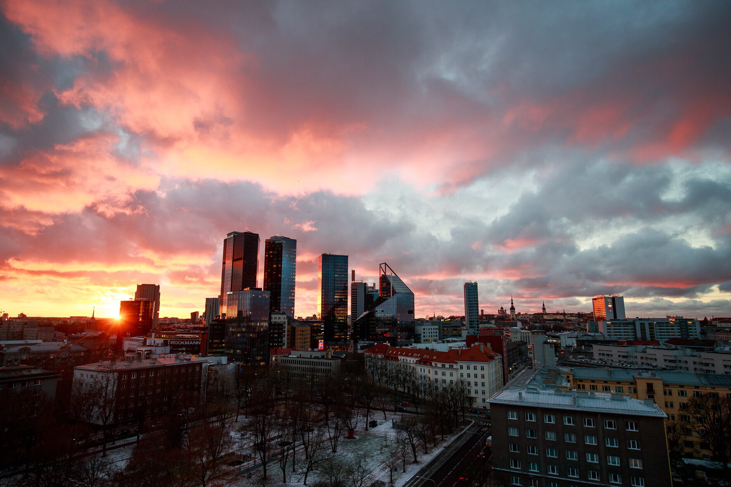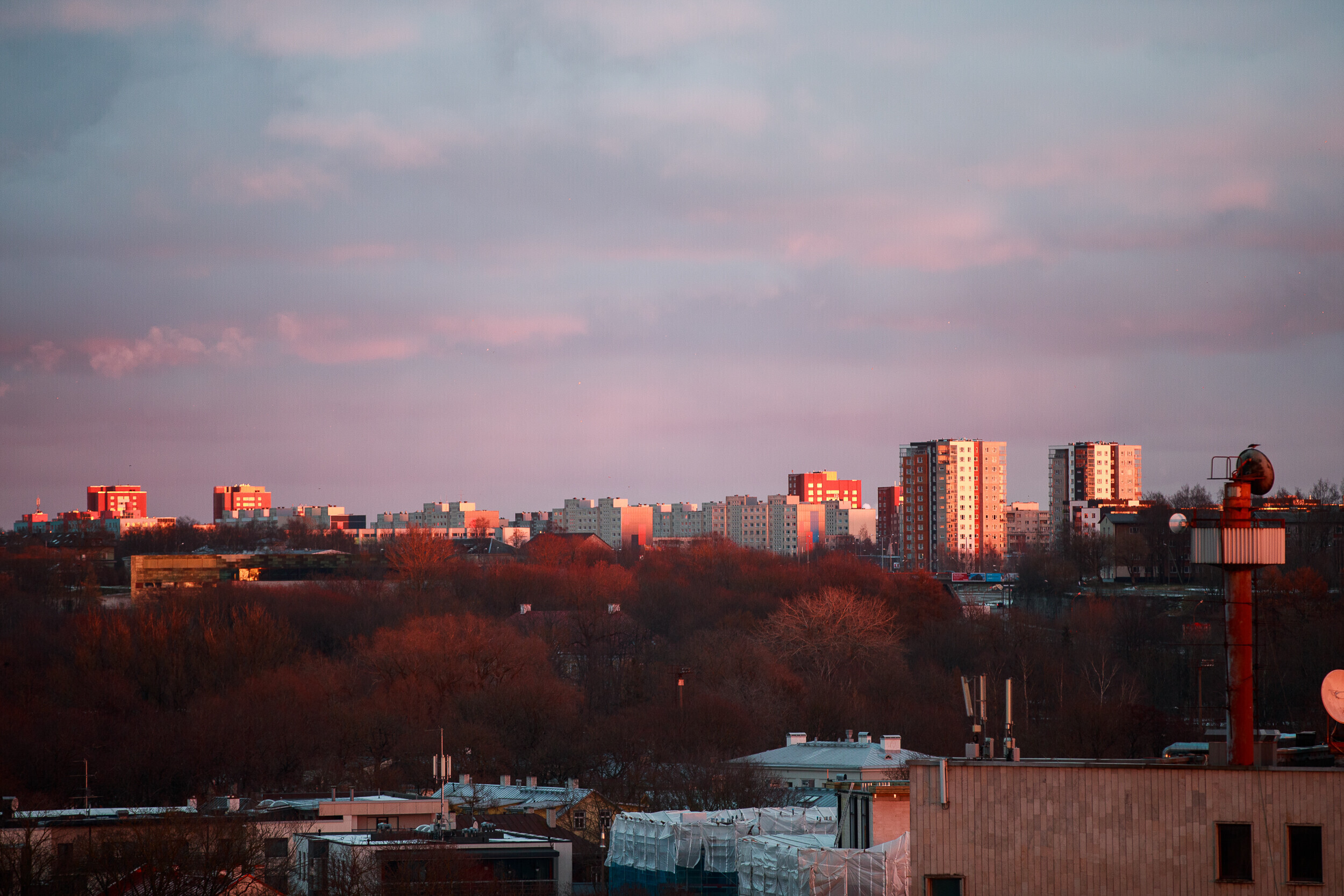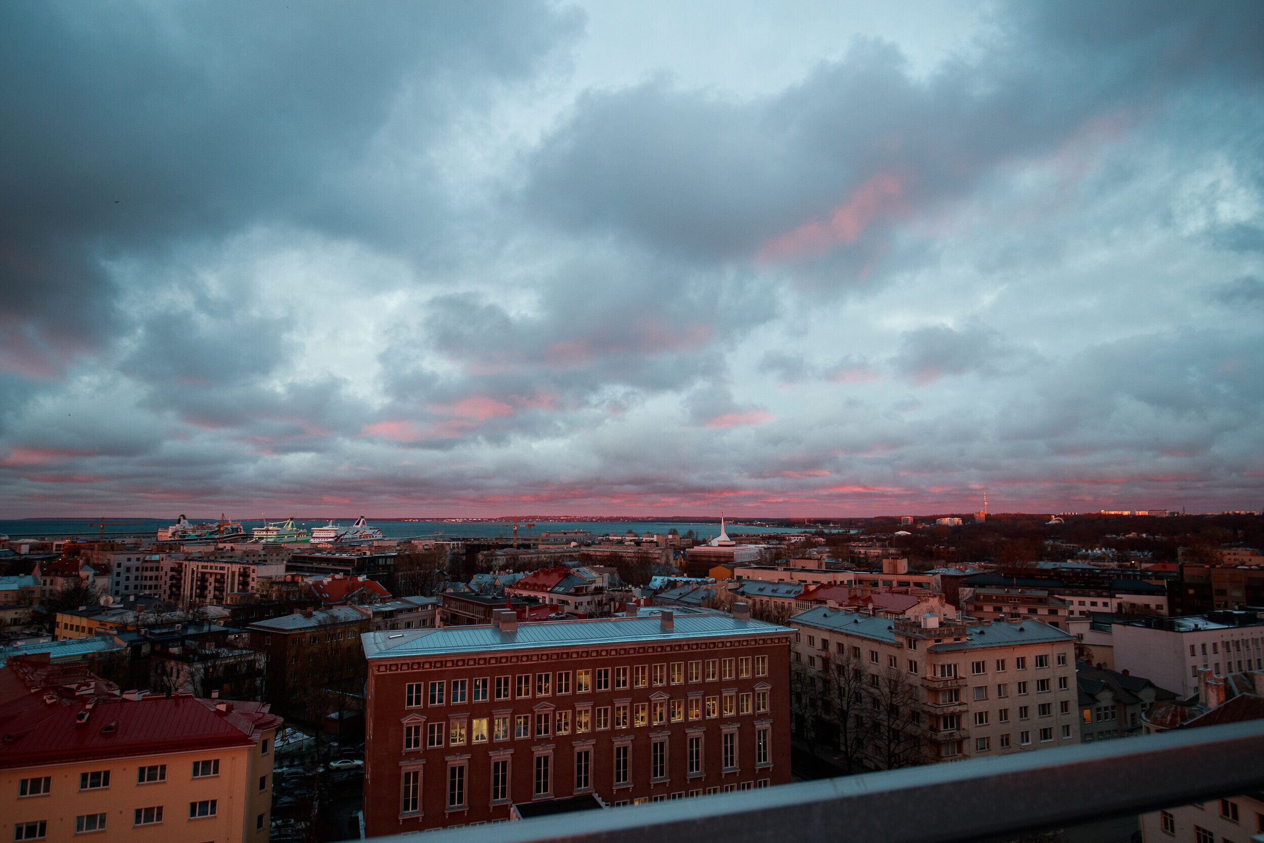 ERR-i uudistemeja katuselt avanes täna kaunis vaade Tallinna kesklinnale, millele päikeseloojang müstilist kuma heitis. Fotod tegi ERR-i fotograaf Siim Lõvi.
