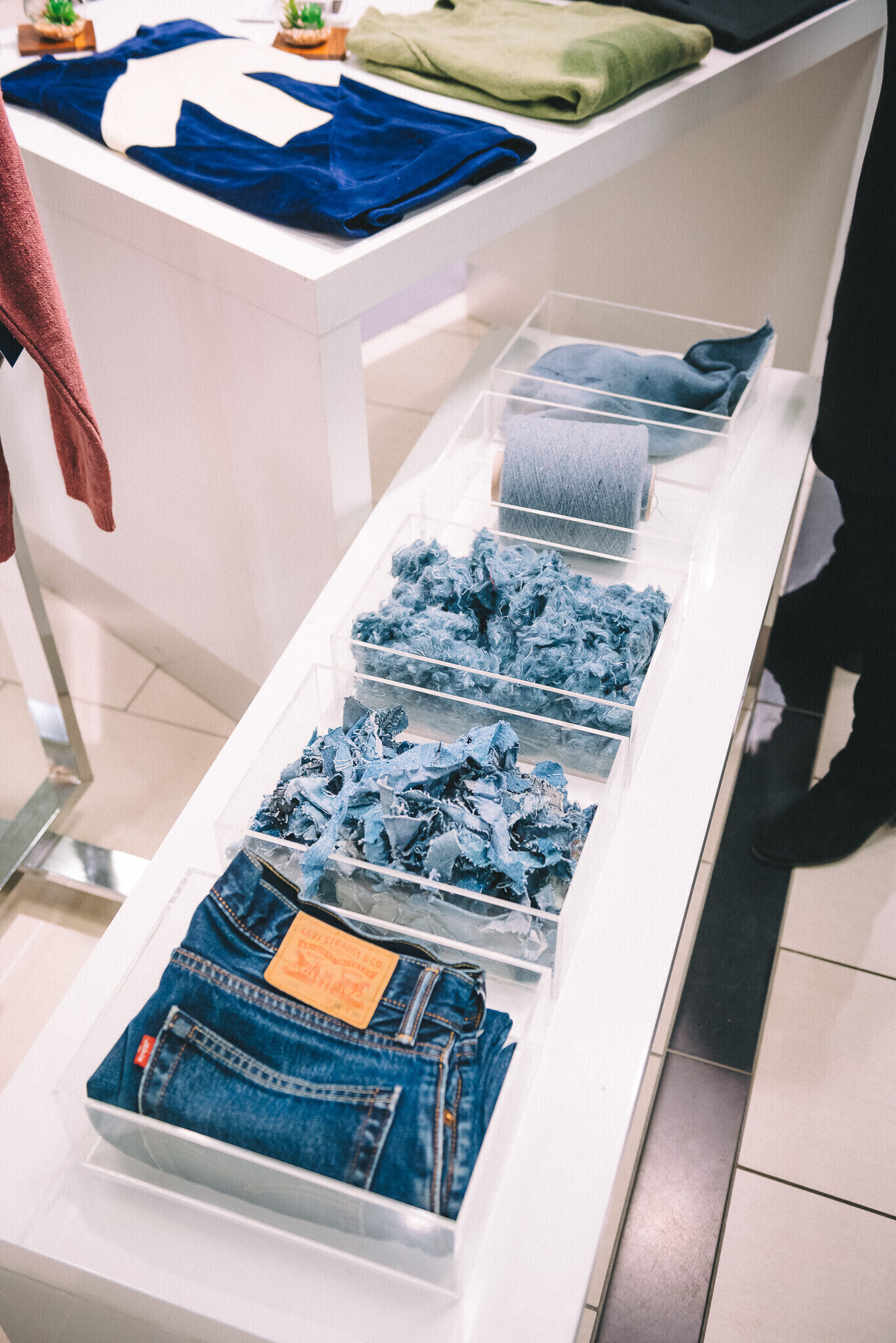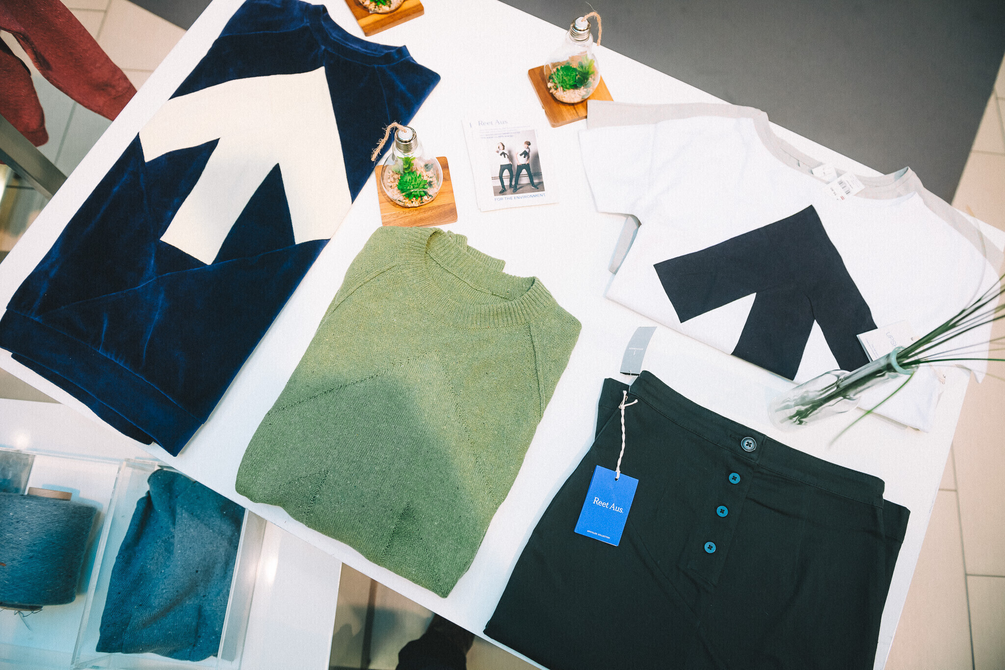 Esmaskordselt Eestis ühendati kogu ringmajanduse ahel ehk uuskasutuskeskus, disain ja kaubamaja. Kolme osapoole koostööna tekkis võimalus vähendada tekstiiliprügi ja arutut tarbimist ning katsetada tekstiilimaterjalide ringlussevõttu: üheskoos koguti kokku vanad teksad, Hollandi koostööpartneri abiga korduvkasutuseks kõlbmatud purustati, misjärel ketrati kiududest lõng. Reet Aus lõi omakorda moodsa disaini ja nii valmisid uued kudumid.