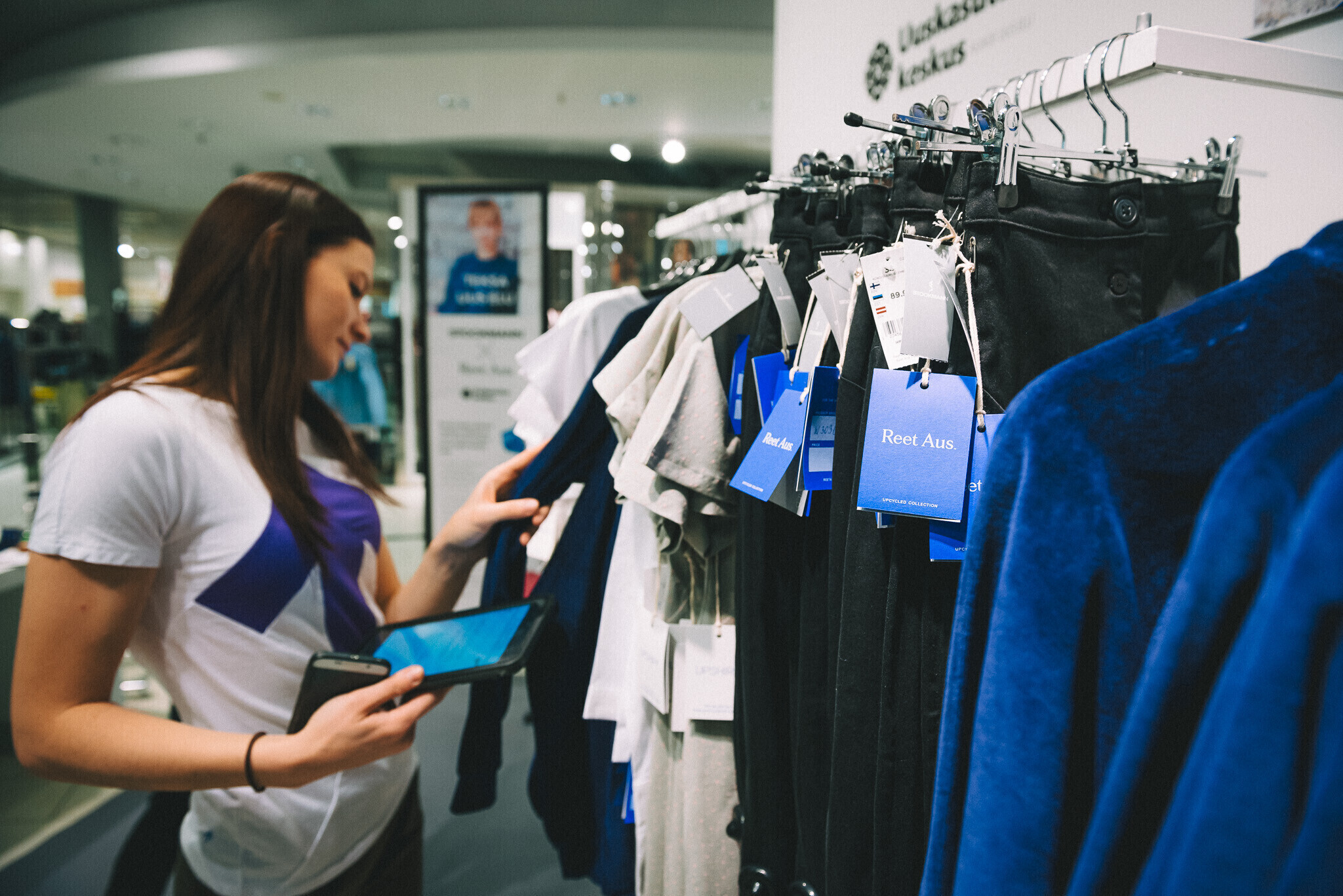 Reet Aus tutvustas Stockmanni kaubamajas esimest ringdisaini kudumikollektsiooni "Teksa uus elu", mis on valmistatud kasutatud teksade kogumise kampaania raames.