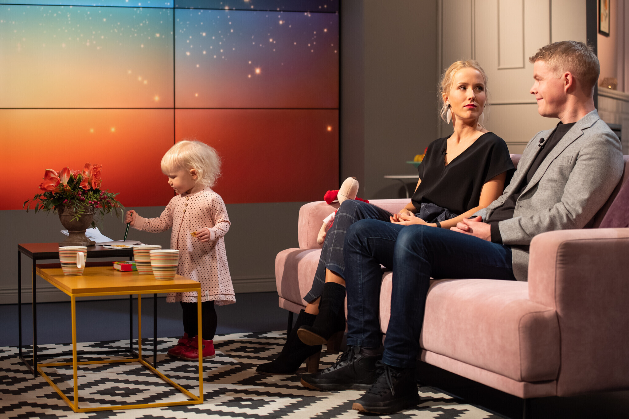 Saates on külas näitlejad Saara Kadak ja Märt Pius koos eelmise aasta kevadel sündinud tütre Susannaga.