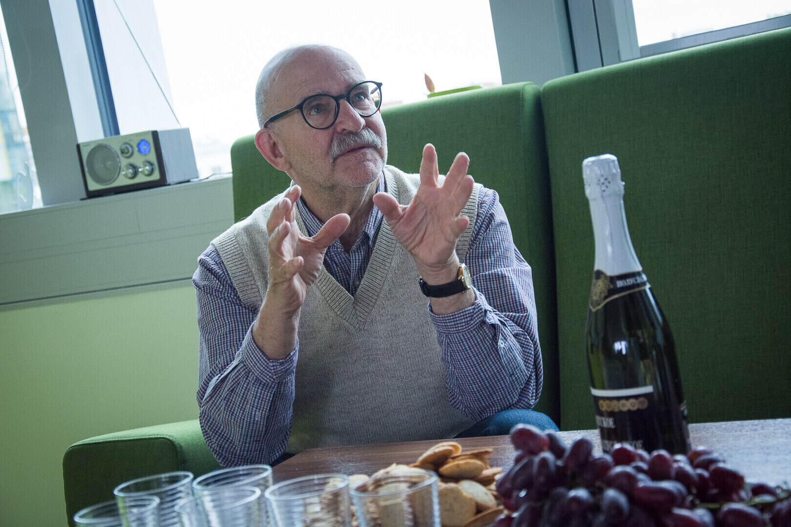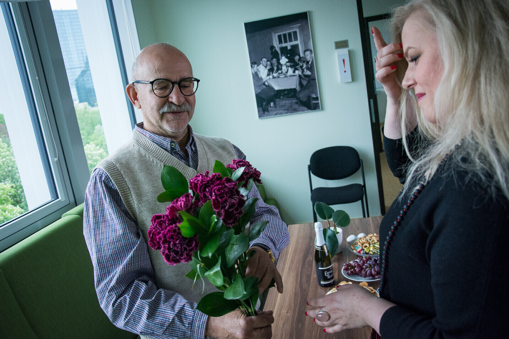 "Minu soov on näha sagedamini selliseid silmi nagu ma praegu näen - sõbralikke, naeratavaid. Siis hakkab ju endal väga hea, kui inimene sulle naeratab, siis sa ju tahad paratamatult talle vastu naeratada. Seda võib ju igaüks meie raadiokuulajatest proovida, ka peegli ees iseendale naeratades. Siis hakkab üldiselt päris hea," jagas Vseviov kõigiga oma sünnipäevasoovi.